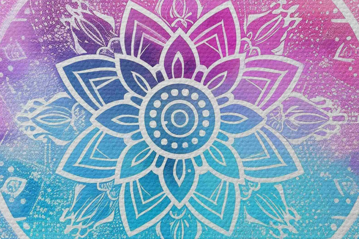 Runde Wandbilder Weißes Mandala auf farbigem Hintergrund Nr r38529