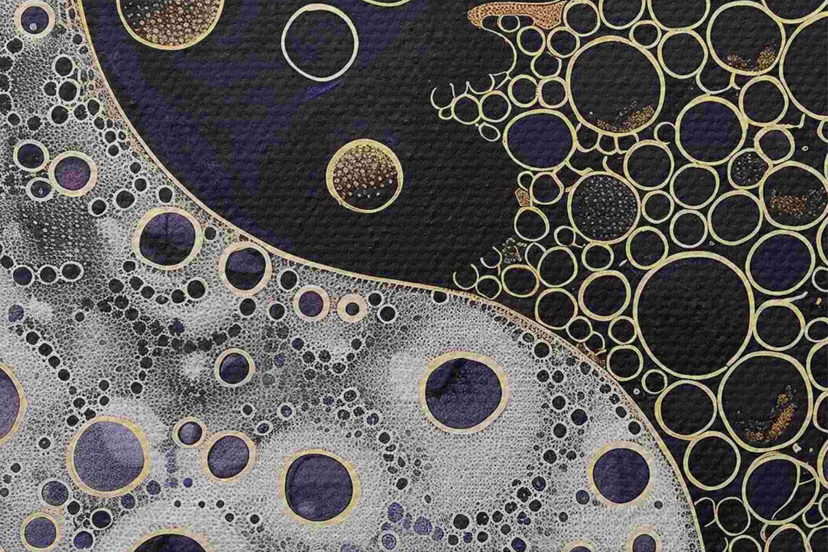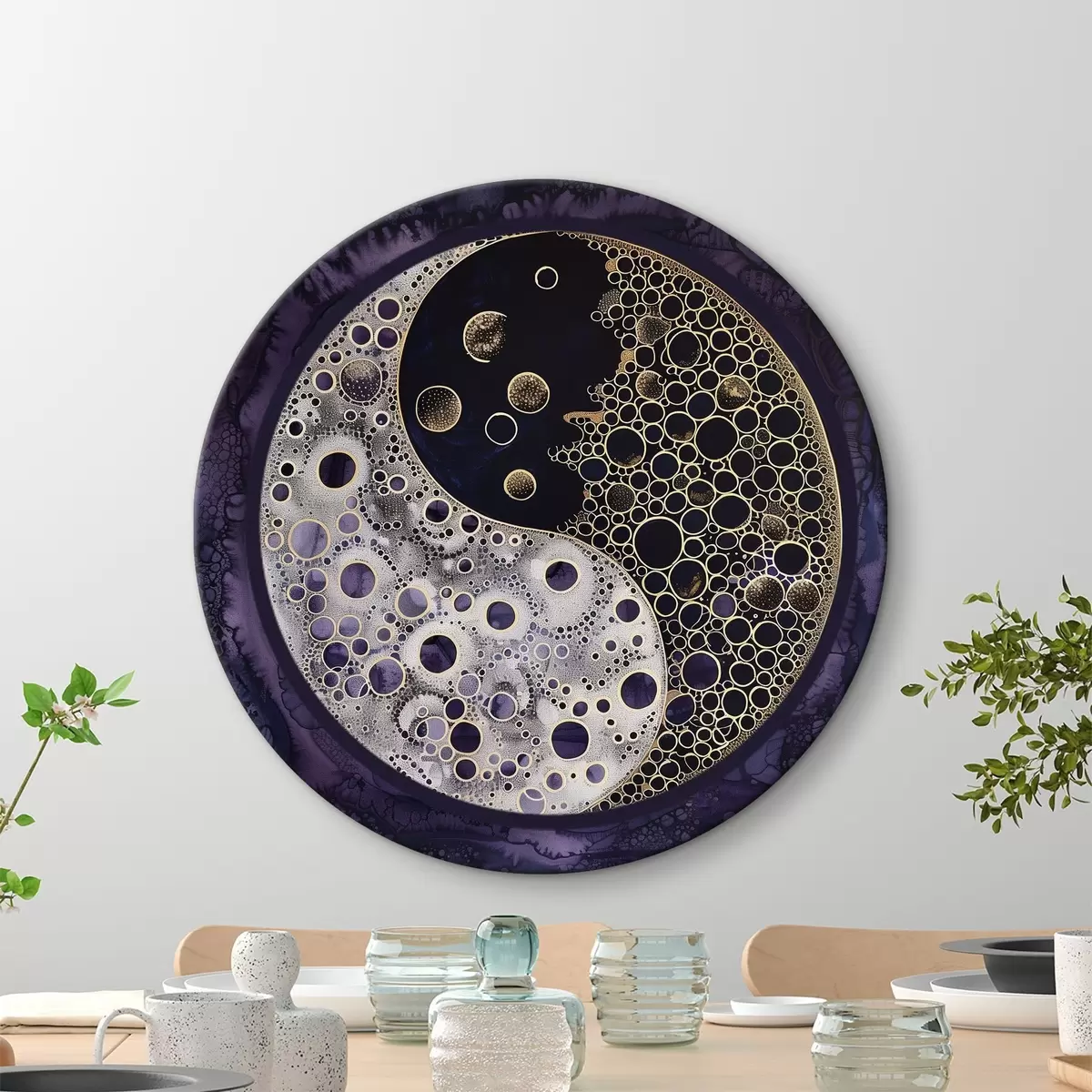 Runde Wandbilder Yin und Yang Symbol auf lila Hintergrund r38535