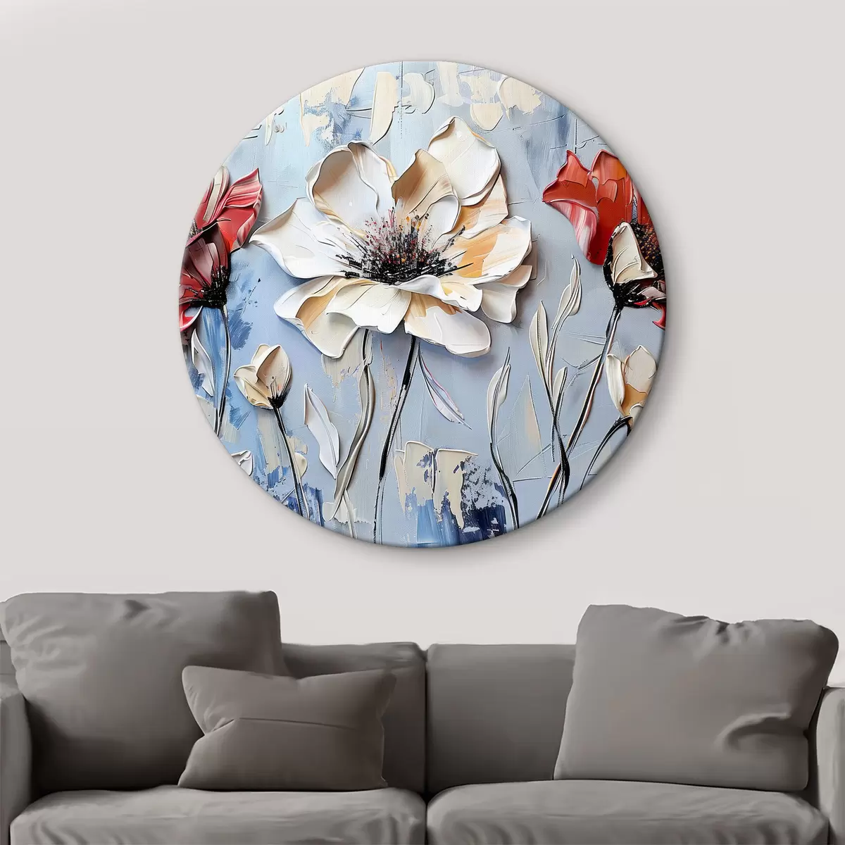 Runde Wandbilder Lebendige Blumen auf einem ruhigen blauen Hintergrund r38572