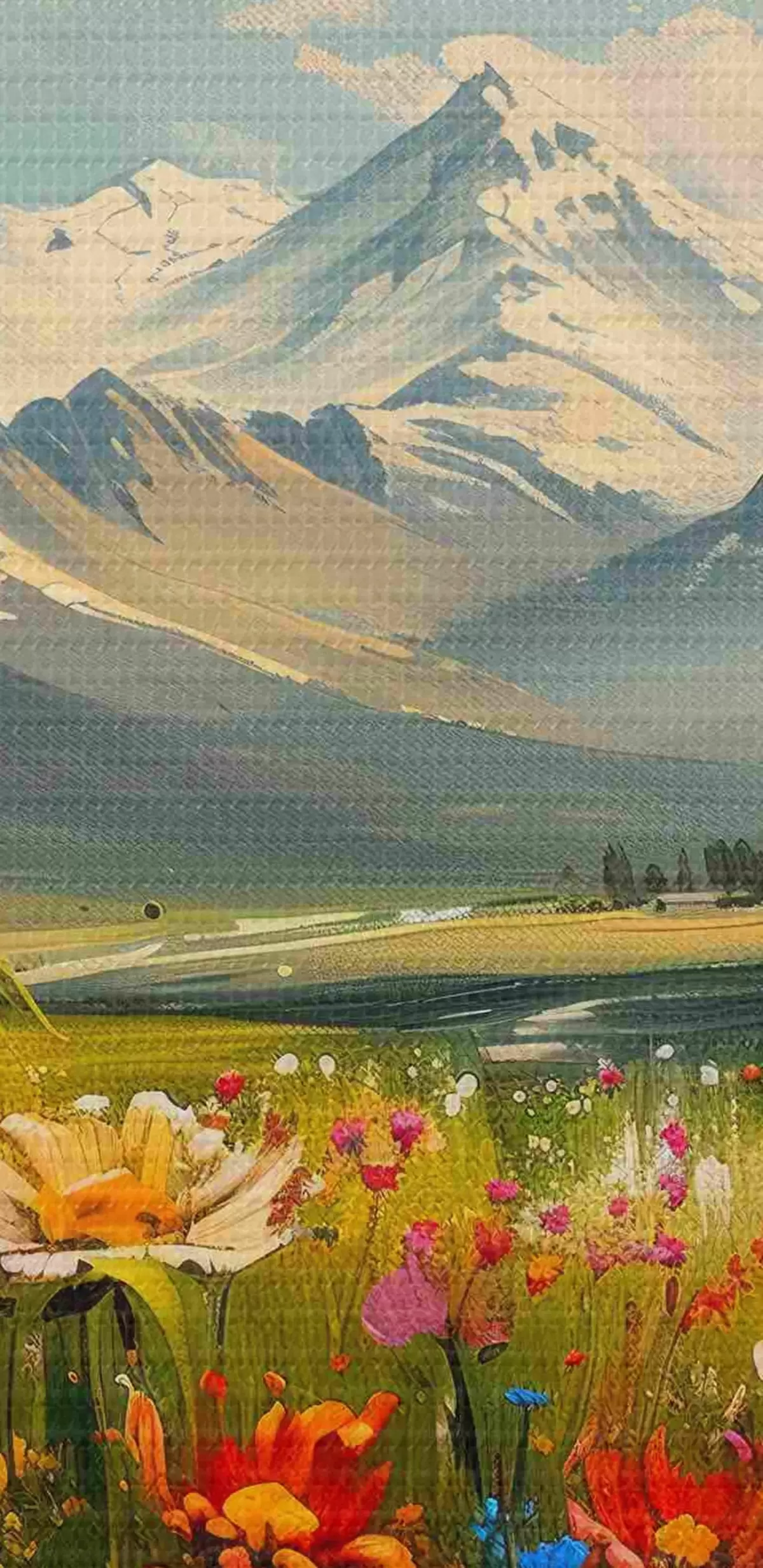 Runde Wandbilder Blühende Wiesen unter schneebedeckten Gipfeln r38573