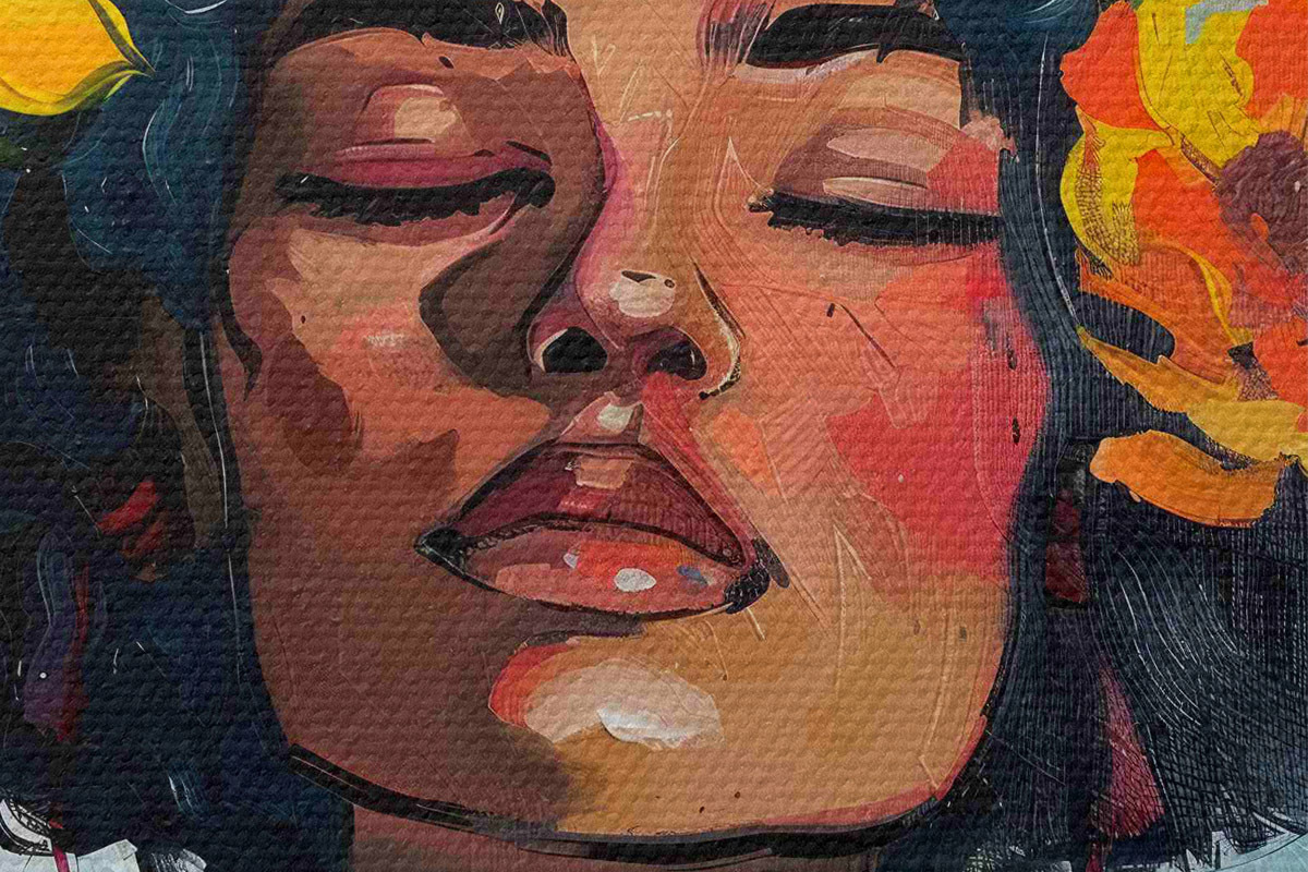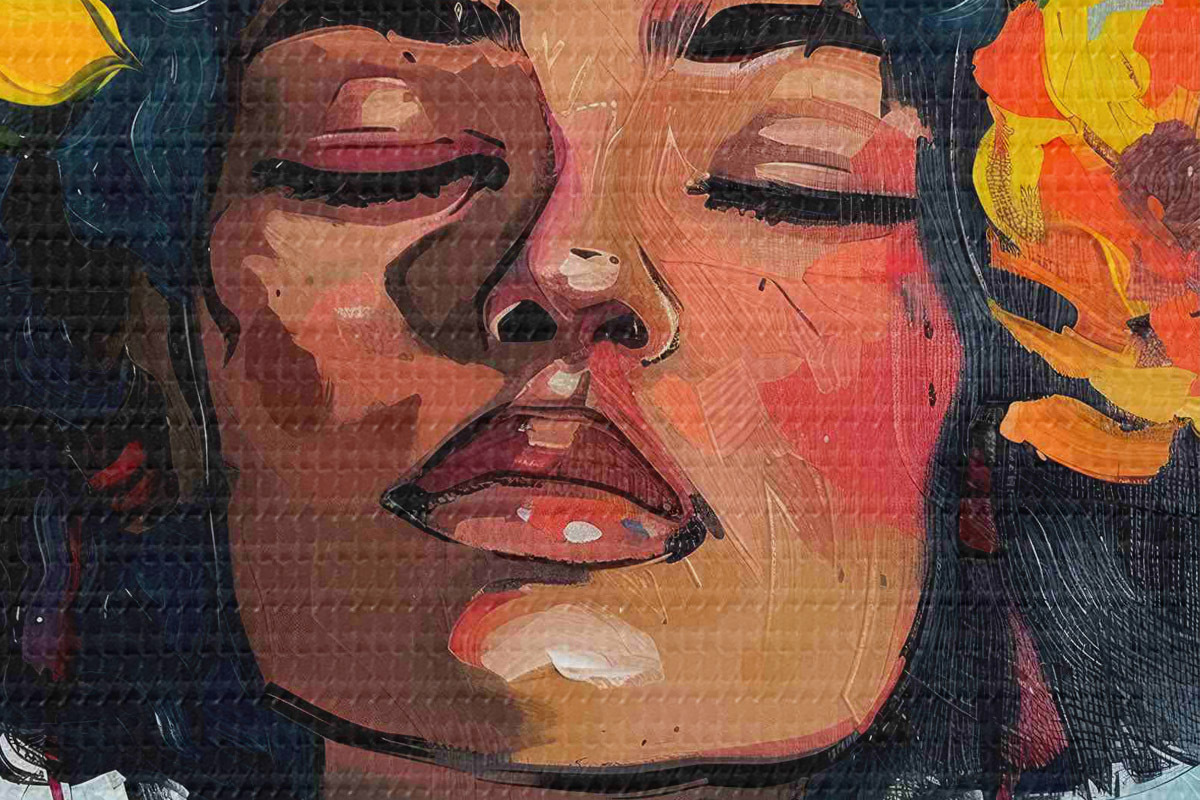 Runde Wandbilder Ein Gemälde, das eine Frau mit Blumen in ihrem Haar zeigt Nr r38575