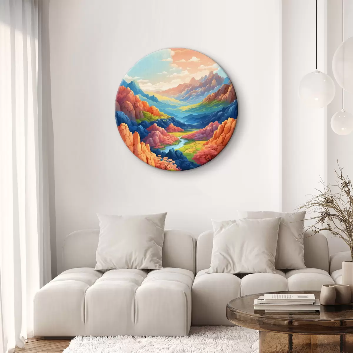 Runde Wandbilder Landschaft mit Bergen und Fluss r38577