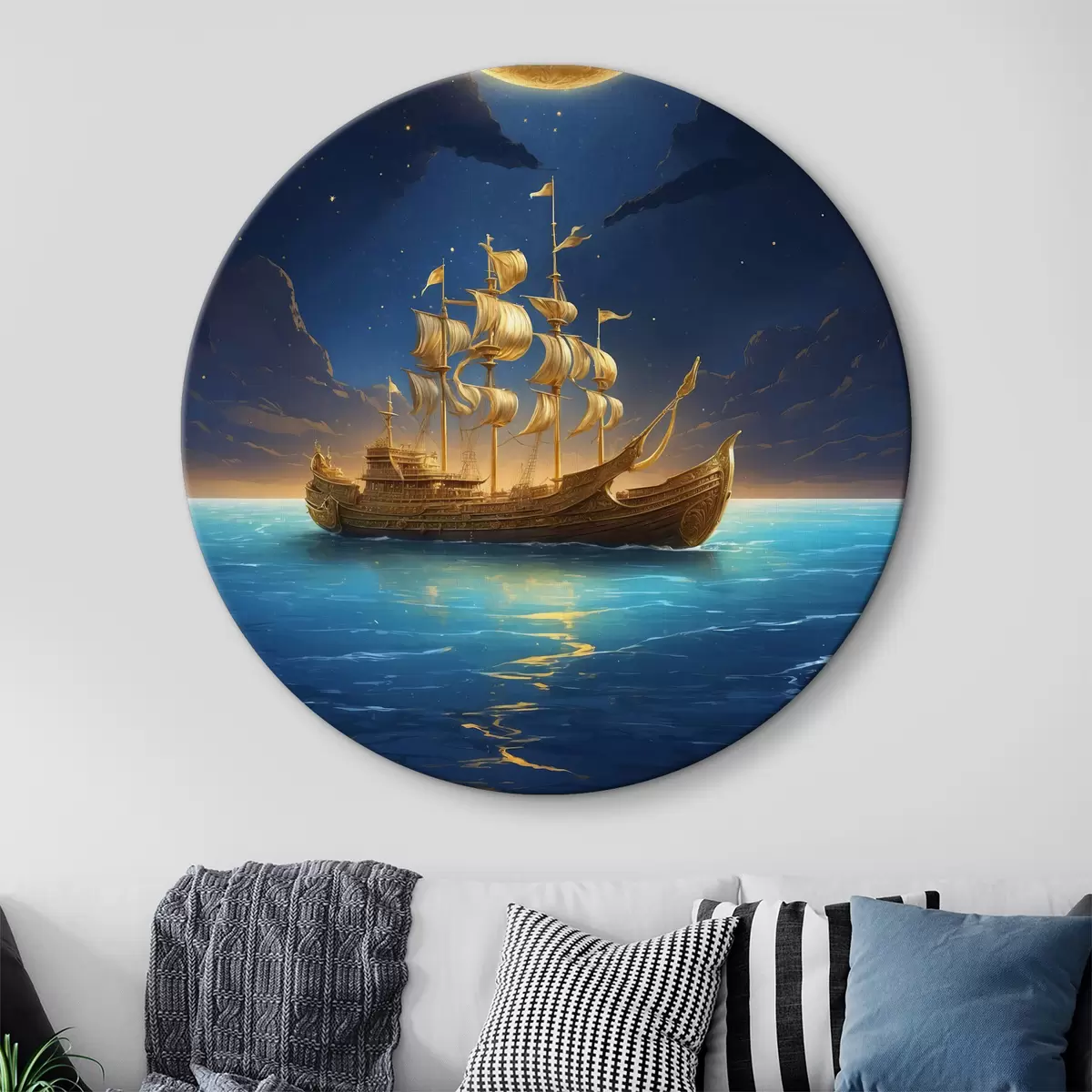 Runde Wandbilder Boot auf dem Wasser mit dem Mond im Hintergrund Nr r38587