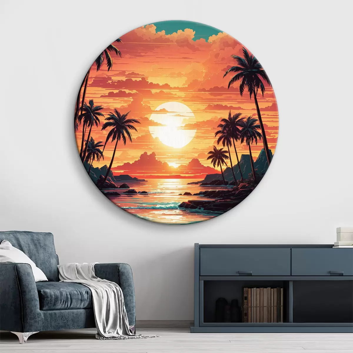 Runde Wandbilder Sonnenuntergang am Strand Nr r38599