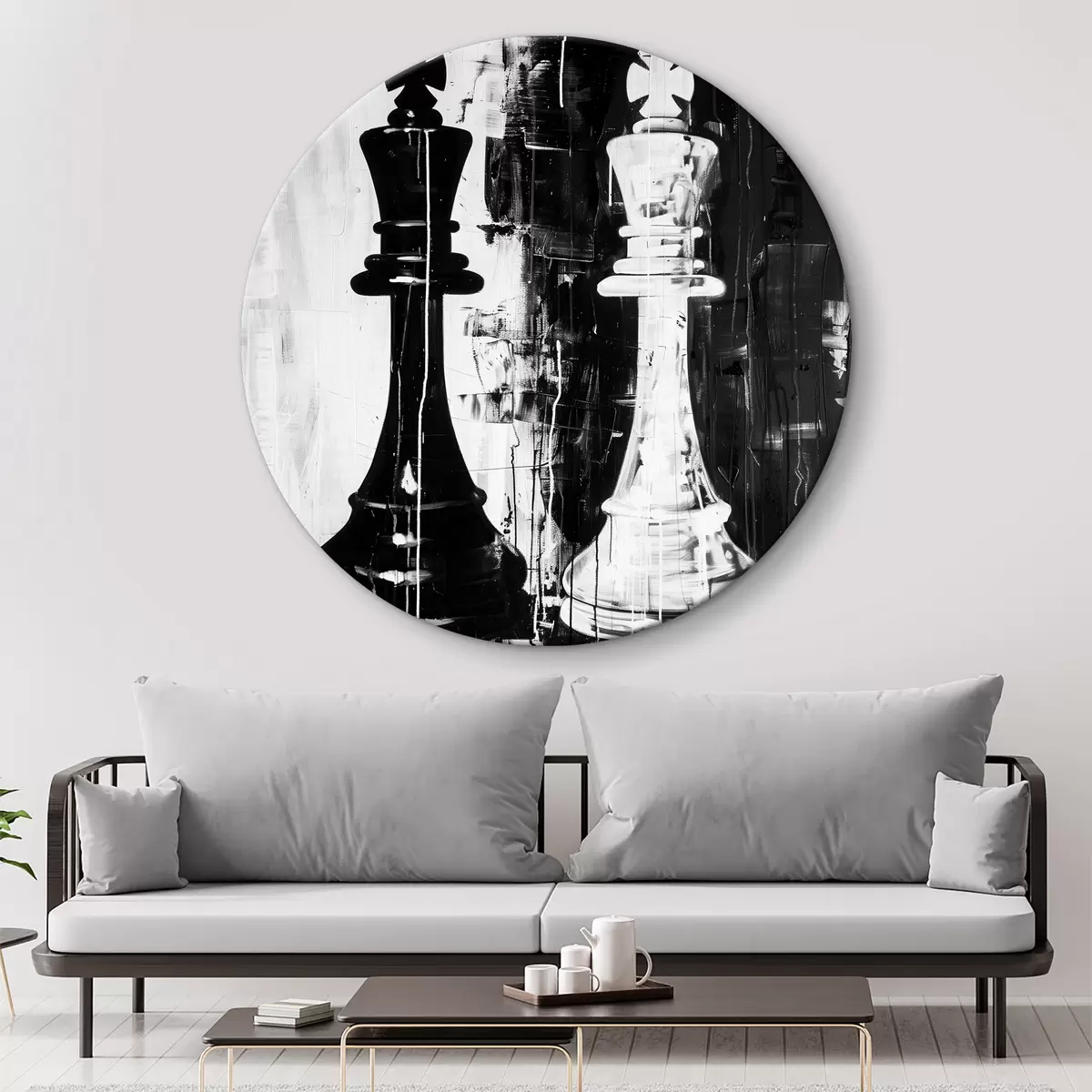 Runde Wandbilder Schachfigur in schwarz und weiß r38642