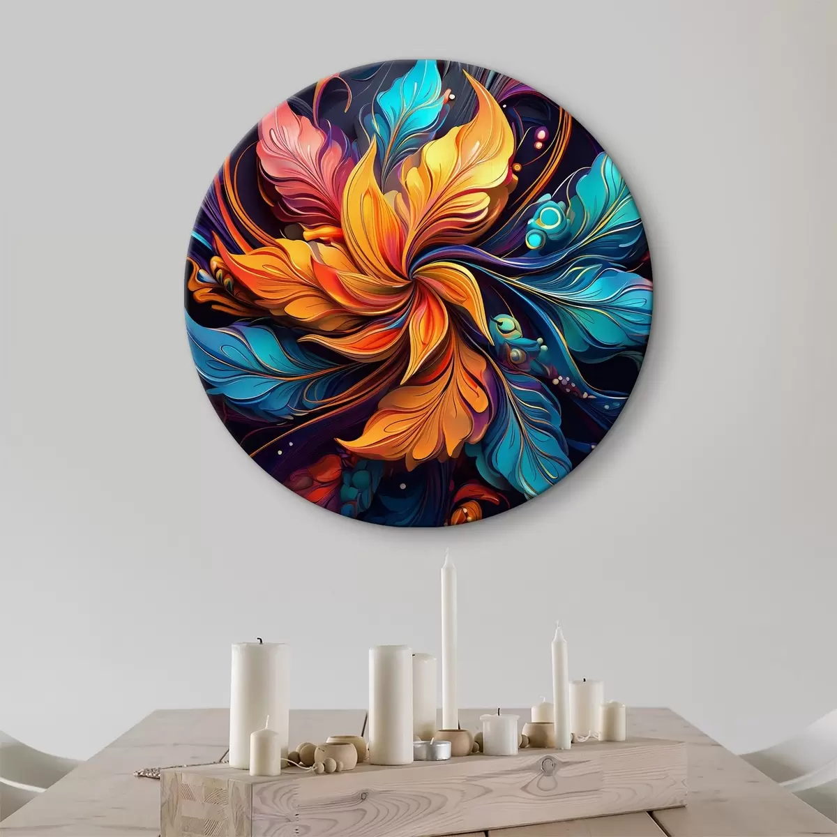 Runde Wandbilder bunte helle Blätter, Abstraktion r38651