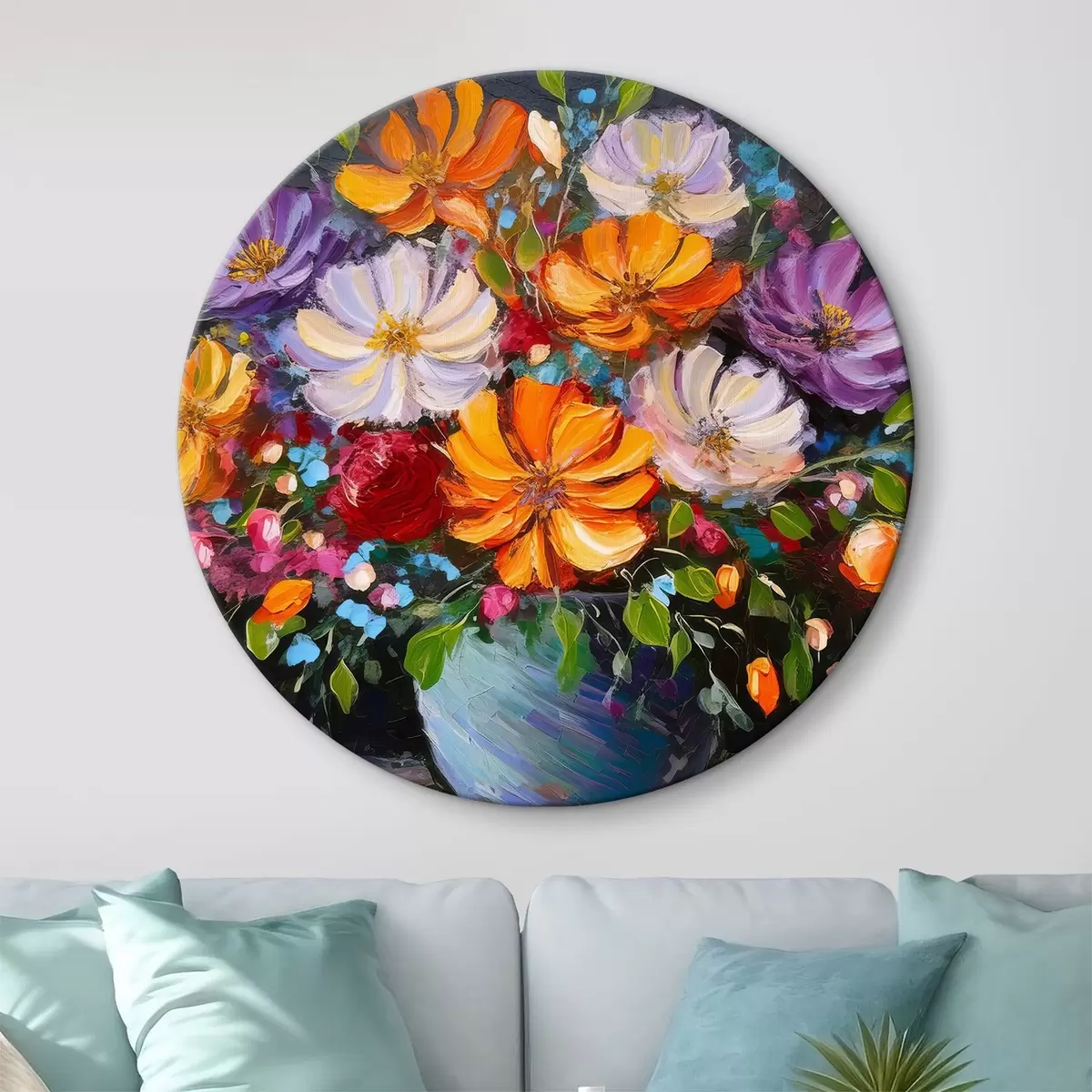 Runde Wandbilder Bild von Blumen in einer blauen Vase Nr r38658