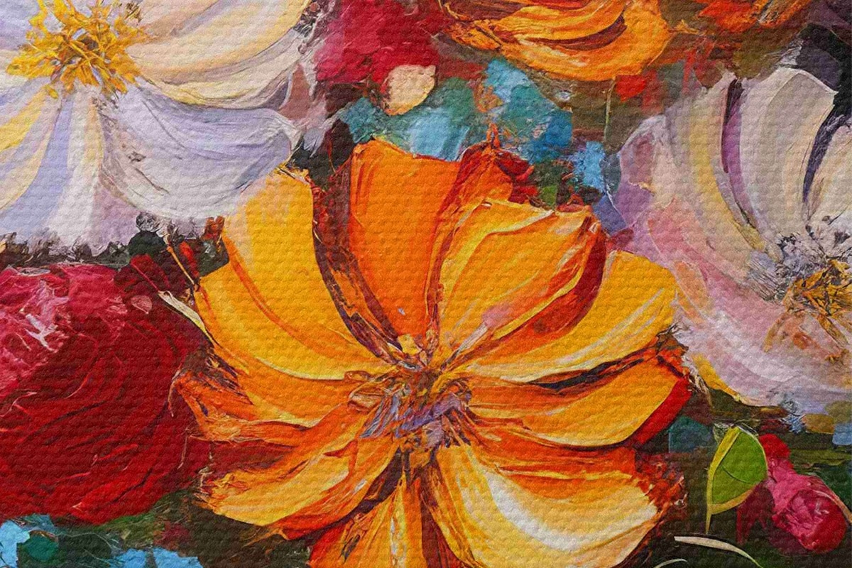 Drei Materialtypen stehen zur Verfügung: Economic Canvas - ein dichtes und haltbares Material für den Digitaldruck, identisch mit Malerleinwand, wasserfeste Oberfläche, realistische Wiedergabe von Details, mittelkörniges Material. Premium Canvas - die Textur ähnelt der einer Malerleinwand (verwobene kleine Fäden). Weiche, detaillierte Wiedergabe des Bildes auf einer matten Oberfläche. Eco-Premium - hochwertiges Gewebe aus 100% Baumwolle. Dank der natürlichen Baumwollfasern ist das Material langlebig und verschleißfest. Hervorragende Farbwiedergabe und Detailtreue.