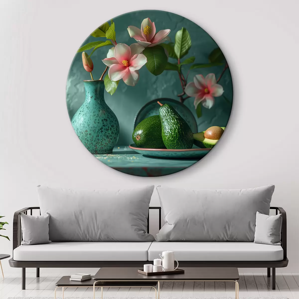 Runde Wandbilder Avocado- und Lilienkomposition Nr r38687
