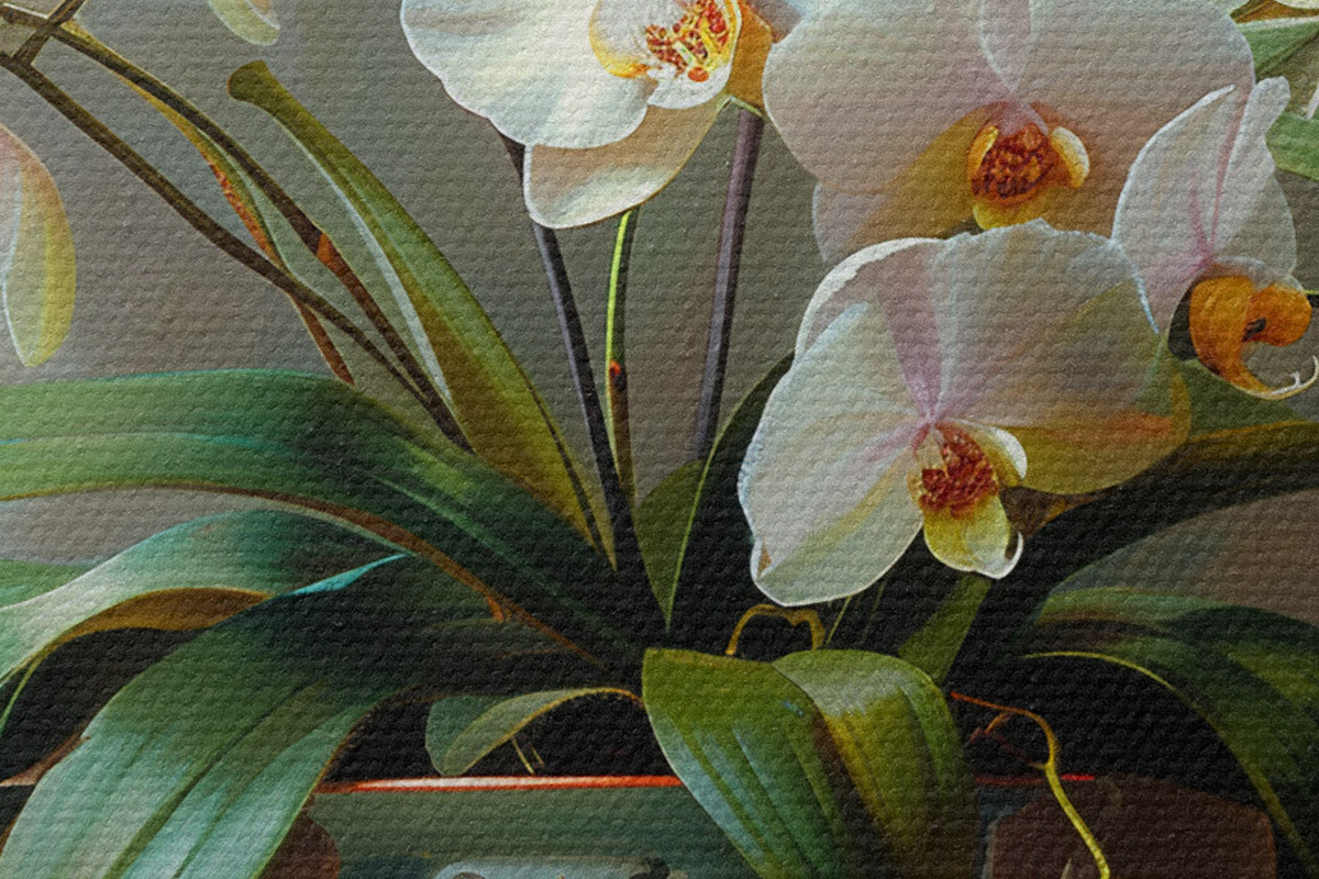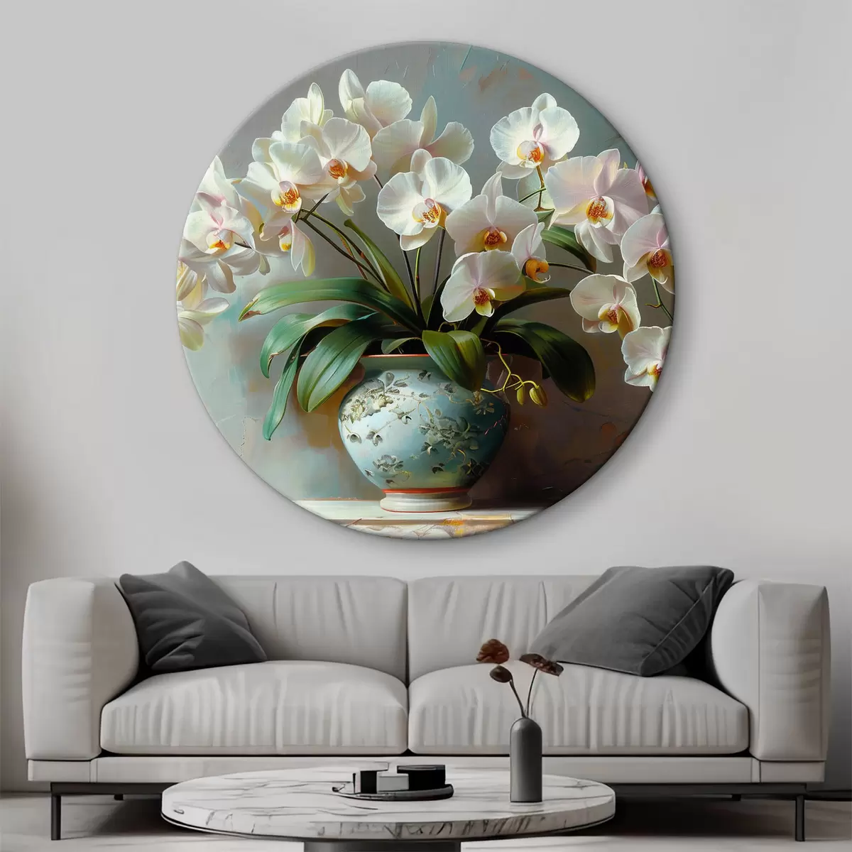 Runde Wandbilder Blumenstrauß aus großen weißen Orchideen r38701