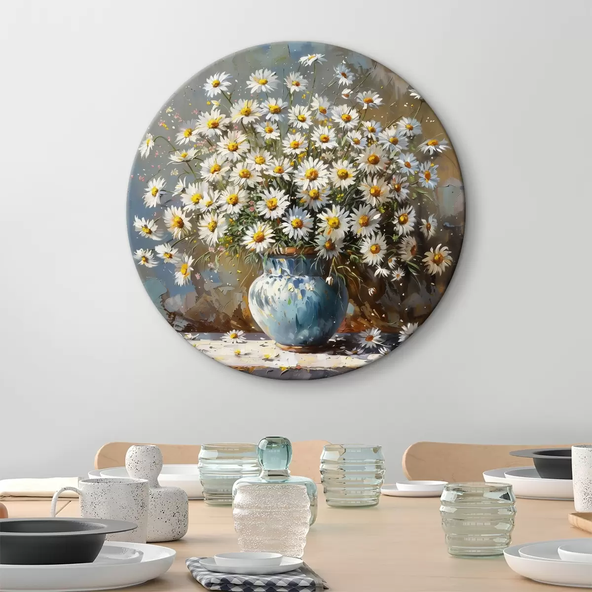 Runde Wandbilder Vase mit Gänseblümchen auf dem Tisch r38707