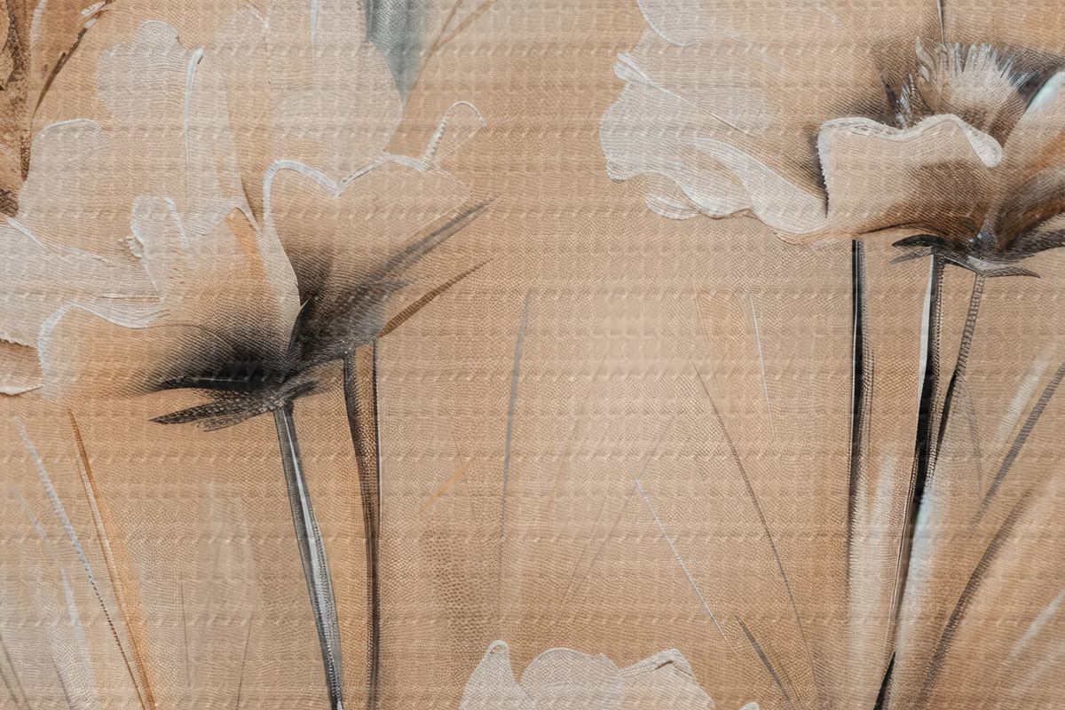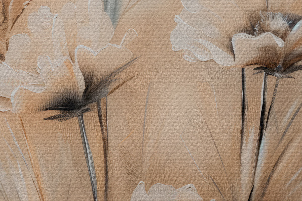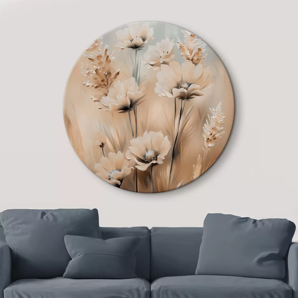 Runde Wandbilder Blumen auf dem Feld in Beigetönen Nr r38720