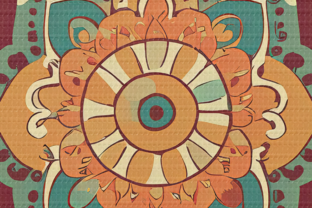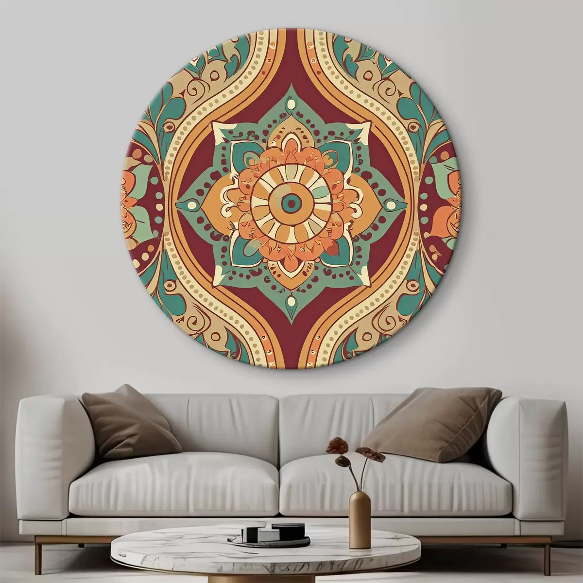 Runde Wandbilder Abstraktion in Türkis- und Beigetönen r38729