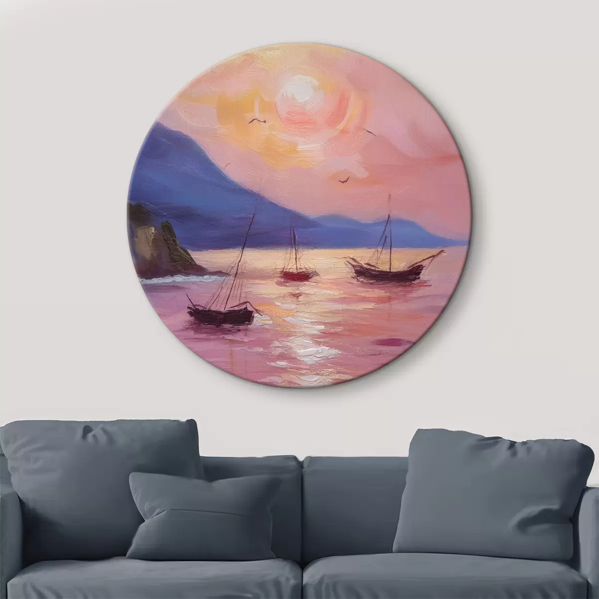 Runde Wandbilder Rosa Sonnenaufgang auf dem Meer, mit Ölfarben Nr r38731
