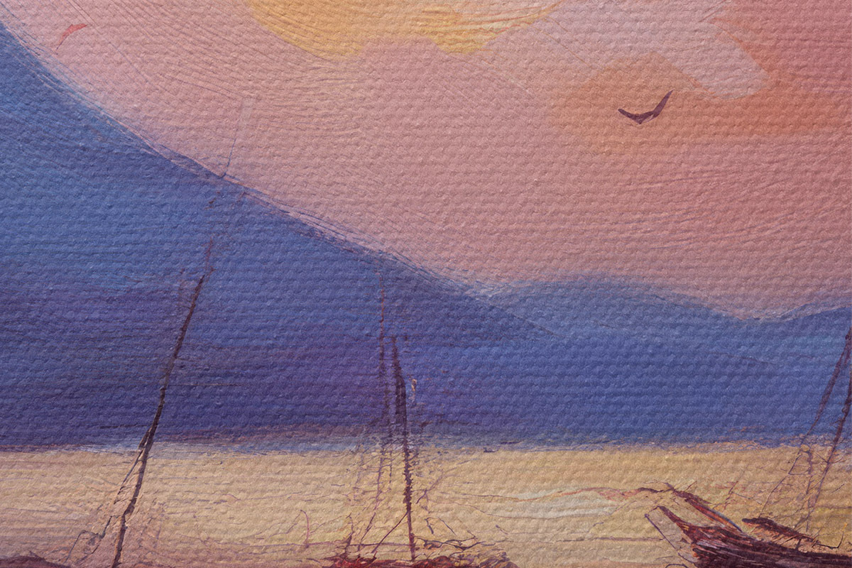 Das Gemälde kann sofort nach Erhalt aufgehängt werden. Das Gemälde wird auf einen 2 cm breiten Holzkeilrahmen aufgespannt.