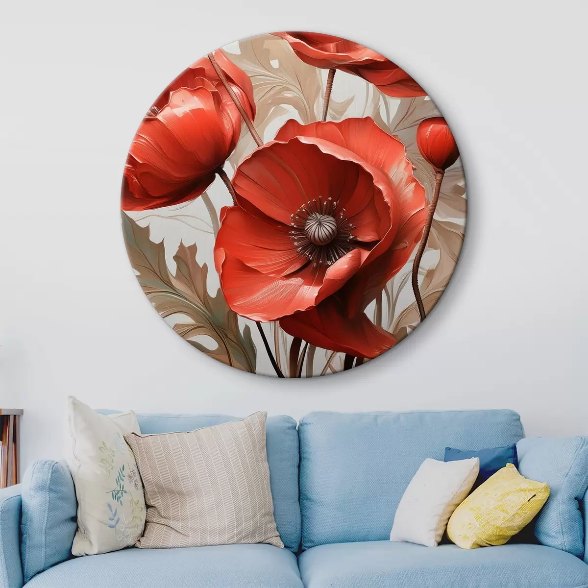 Runde Wandbilder Große rote Mohnblumen mit Ölfarben r38732