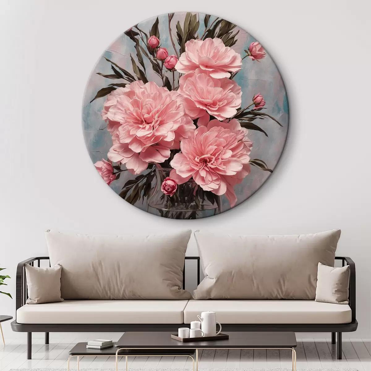 Runde Wandbilder Blumenstrauß aus rosa Blumen in einer Glasvase r38738