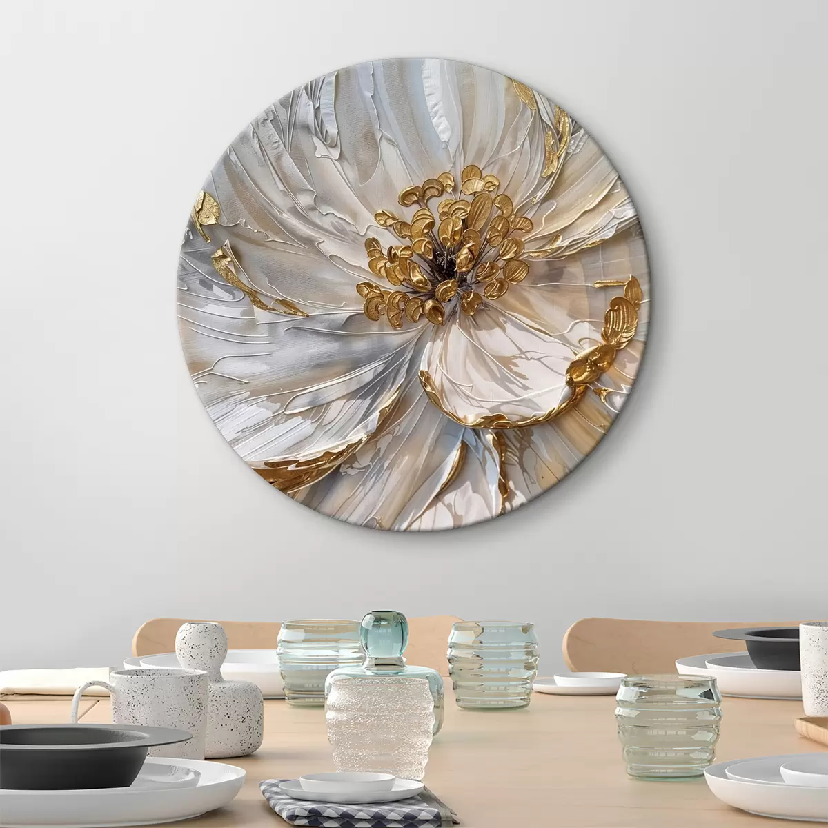 Runde Wandbilder Nahaufnahme einer großen weißen Blume mit gelben Staubgefäßen in der Mitte, künstlerische Dekoration in Öl gemalt r38755