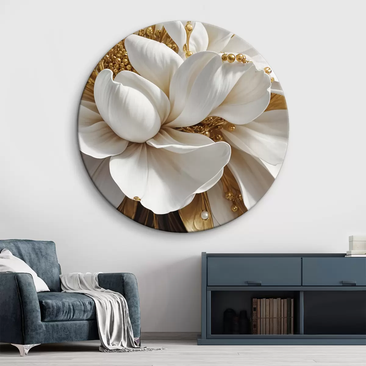 Runde Wandbilder Blütenblätter der weißen großen Blume Nr r38762