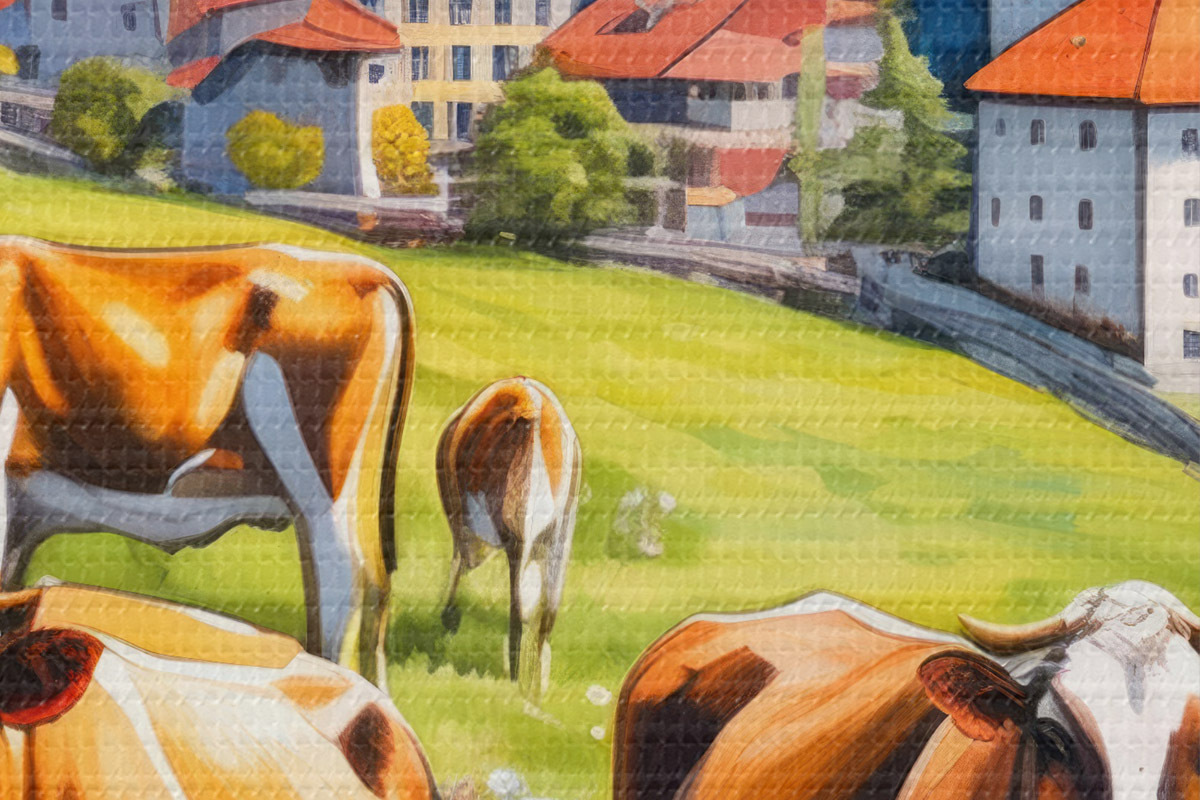 Runde Wandbilder Kühe auf einer Blumenwiese in den Alpen Nr r38808