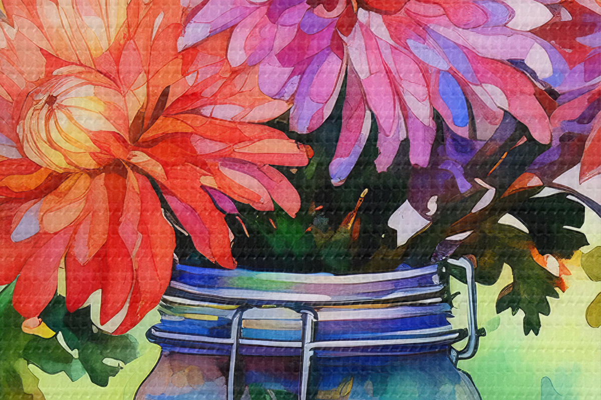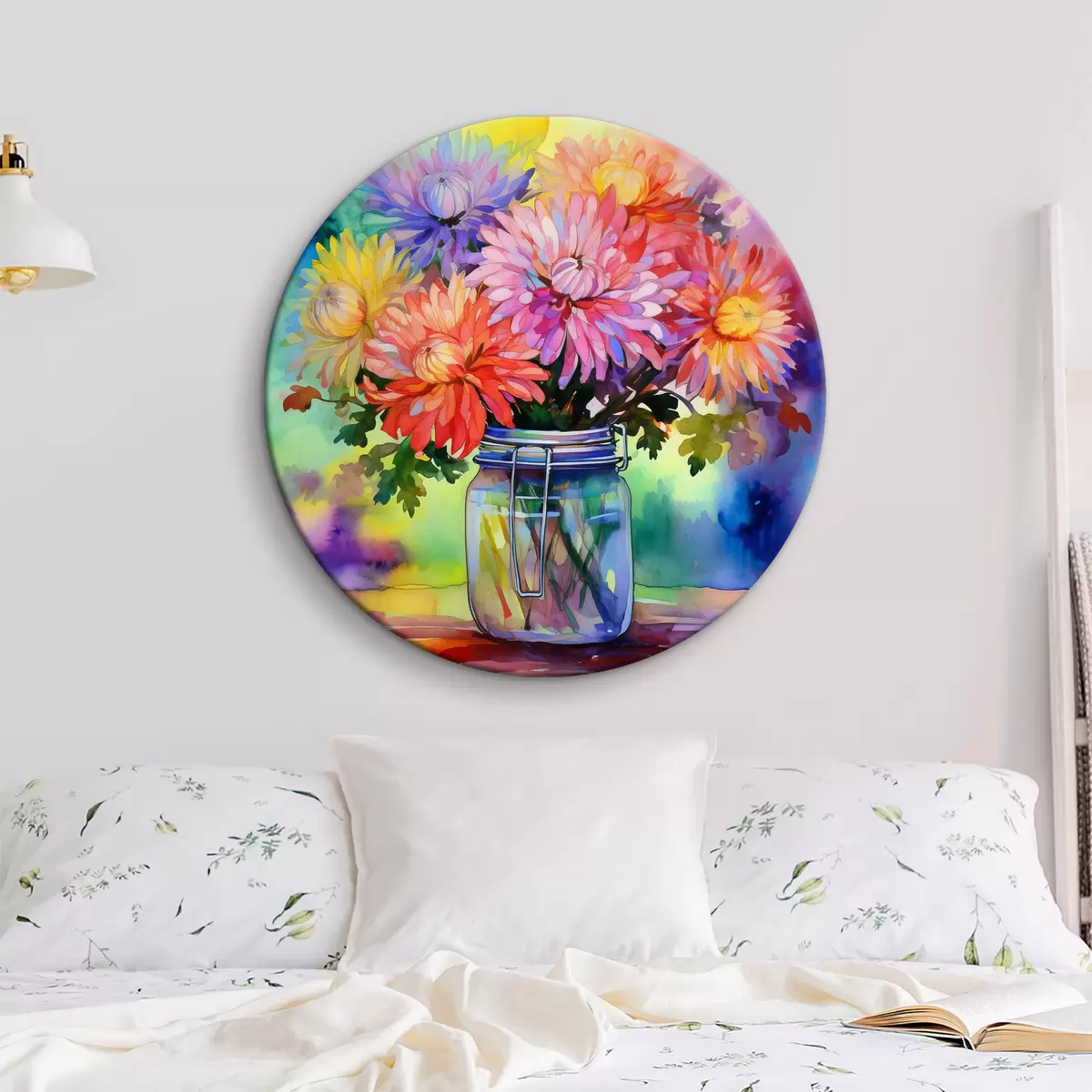Runde Wandbilder Blumenstrauß aus leuchtenden Blumen in einem Glas r38813