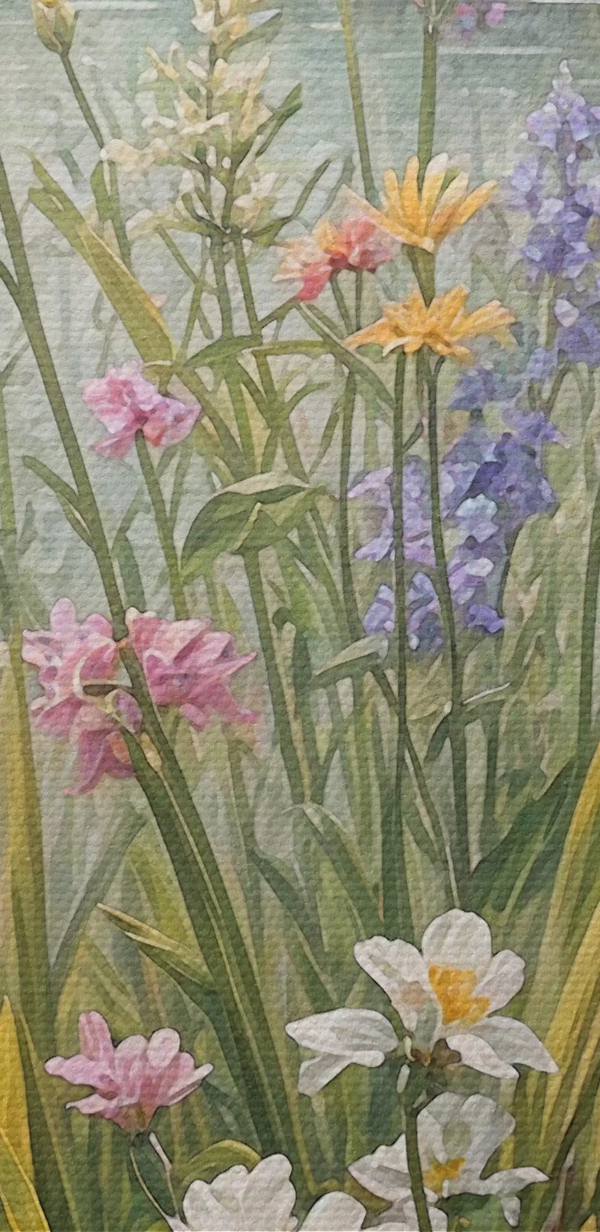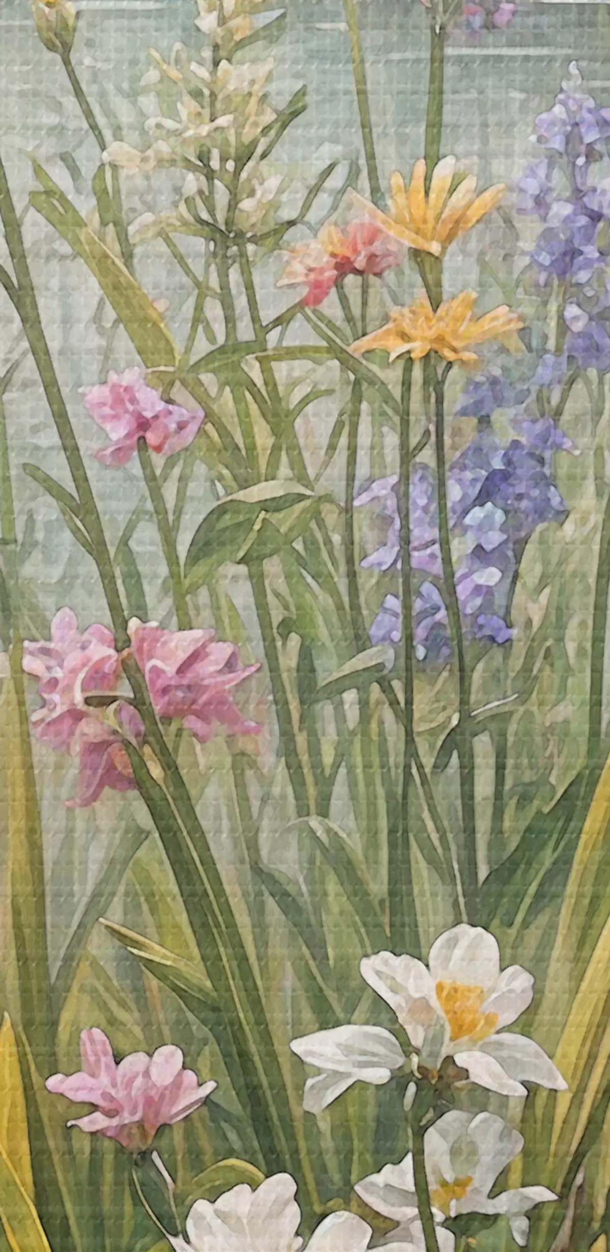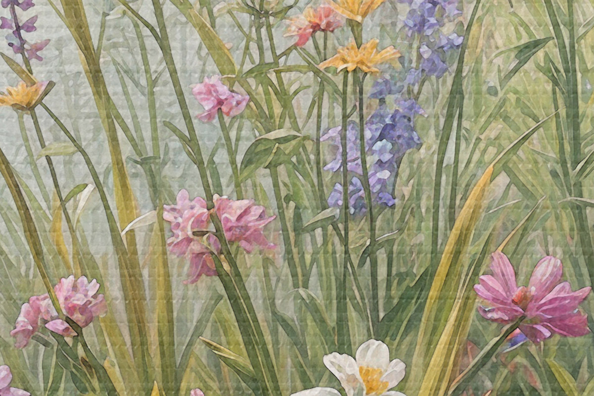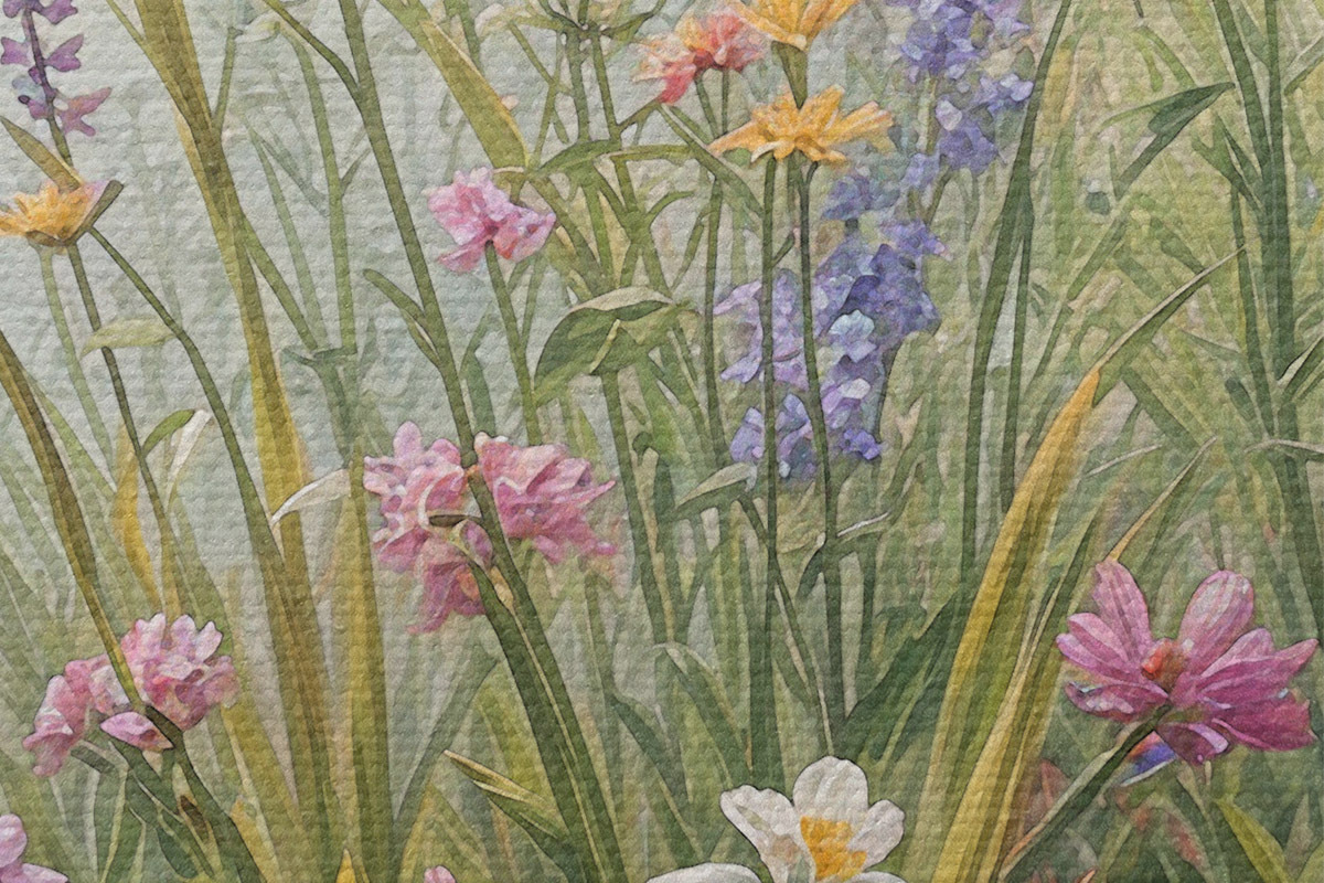 Runde Wandbilder Wildblumen und hohe Gräser. Die Gesamtszene zeigt eine lebendige, natürliche Landschaft r38829