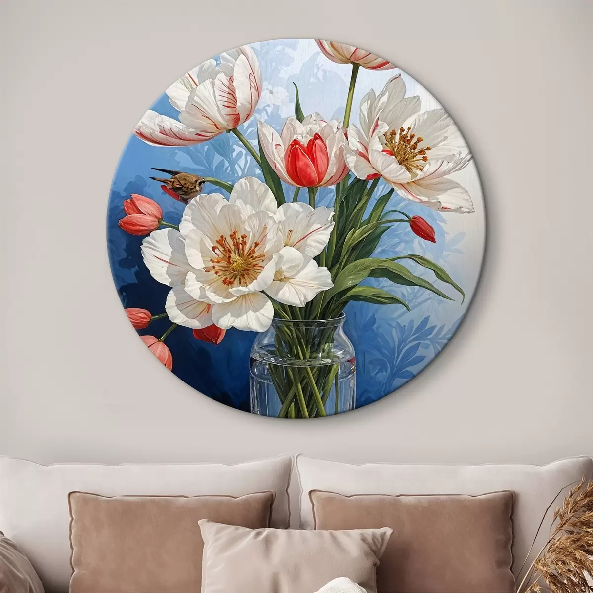 Runde Wandbilder Vase mit großen weißen Blumen r38831