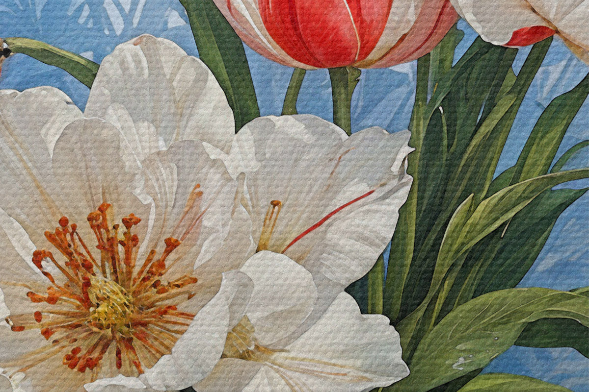 Drei Materialtypen stehen zur Verfügung: Economic Canvas - ein dichtes und haltbares Material für den Digitaldruck, identisch mit Malerleinwand, wasserfeste Oberfläche, realistische Wiedergabe von Details, mittelkörniges Material. Premium Canvas - die Textur ähnelt der einer Malerleinwand (verwobene kleine Fäden). Weiche, detaillierte Wiedergabe des Bildes auf einer matten Oberfläche. Eco-Premium - hochwertiges Gewebe aus 100% Baumwolle. Dank der natürlichen Baumwollfasern ist das Material langlebig und verschleißfest. Hervorragende Farbwiedergabe und Detailtreue.