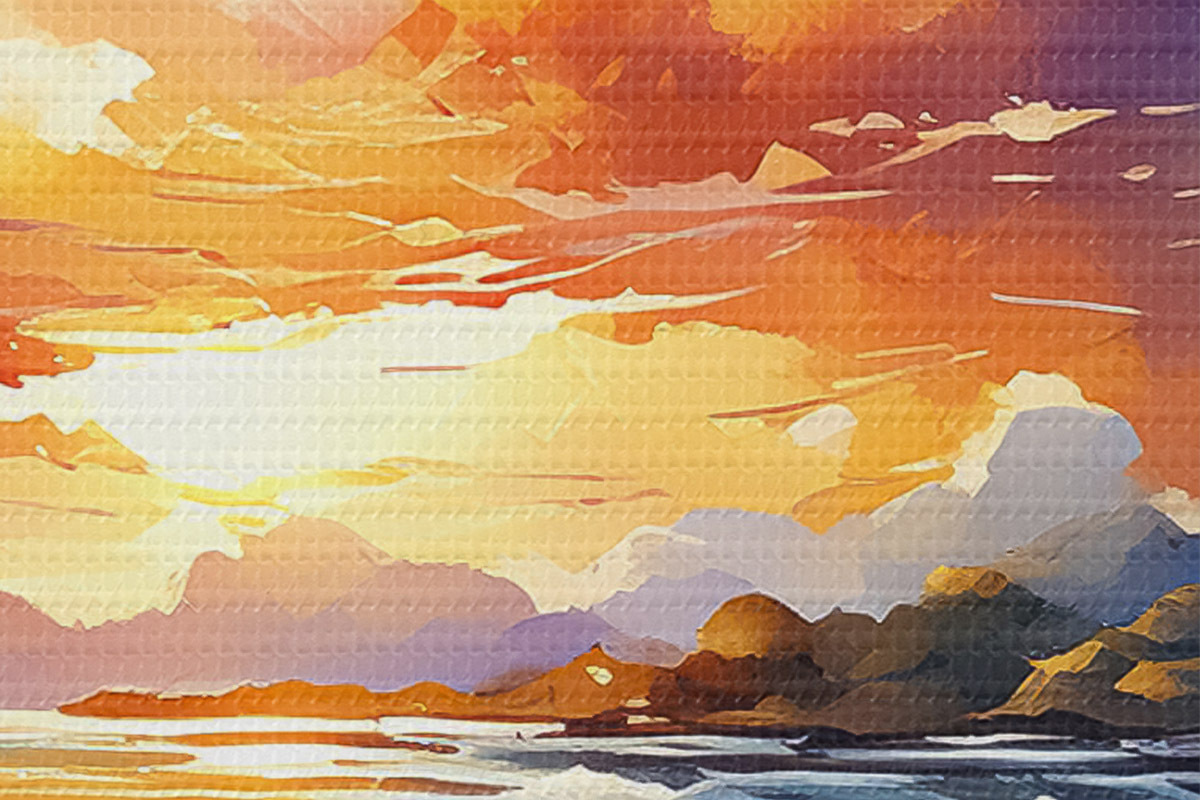 Drei Materialtypen stehen zur Verfügung: Economic Canvas - ein dichtes und haltbares Material für den Digitaldruck, identisch mit Malerleinwand, wasserfeste Oberfläche, realistische Wiedergabe von Details, mittelkörniges Material. Premium Canvas - die Textur ähnelt der einer Malerleinwand (verwobene kleine Fäden). Weiche, detaillierte Wiedergabe des Bildes auf einer matten Oberfläche. Eco-Premium - hochwertiges Gewebe aus 100% Baumwolle. Dank der natürlichen Baumwollfasern ist das Material langlebig und verschleißfest. Hervorragende Farbwiedergabe und Detailtreue.