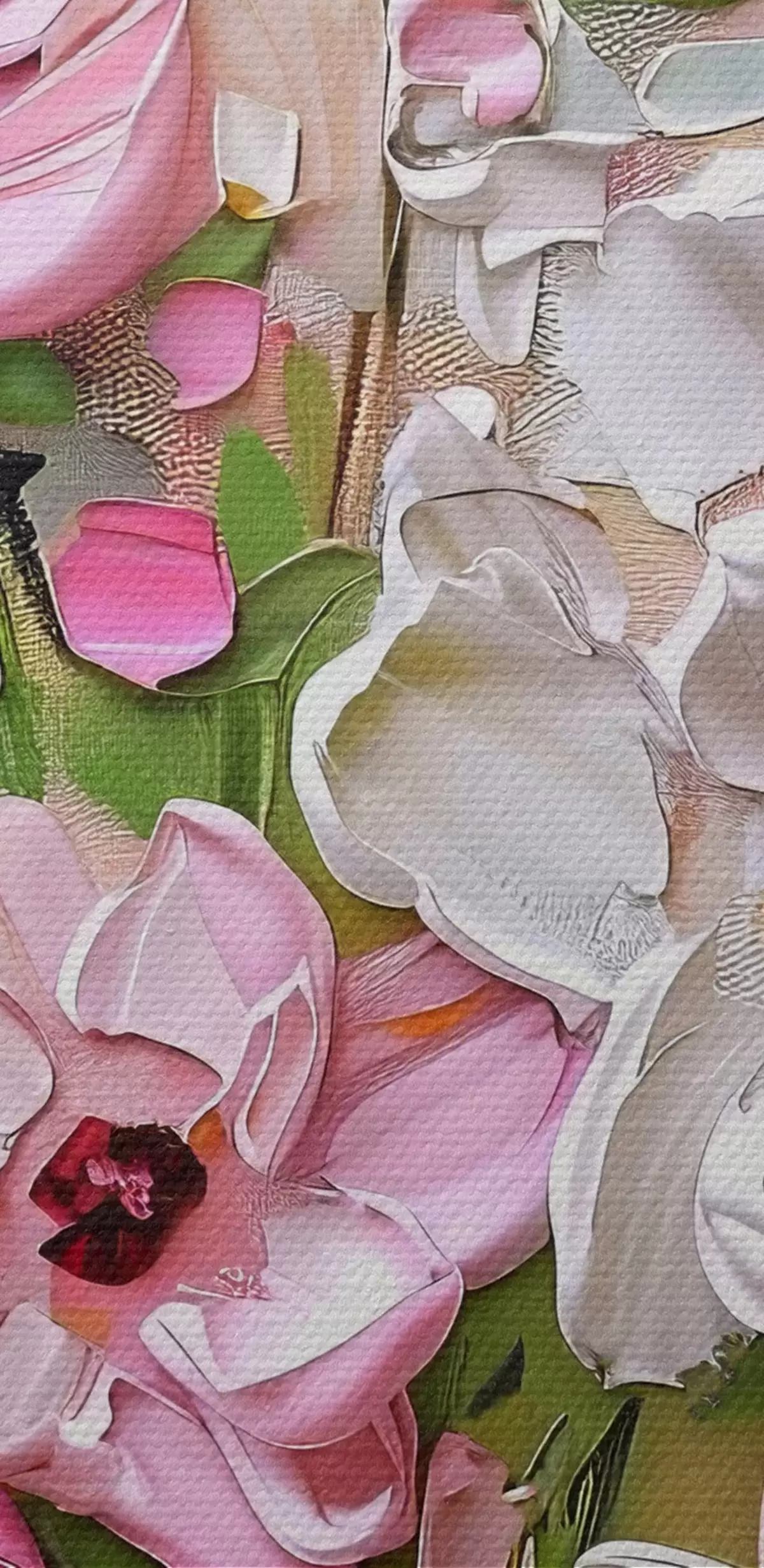 Drei Materialtypen stehen zur Verfügung: Economic Canvas - ein dichtes und haltbares Material für den Digitaldruck, identisch mit Malerleinwand, wasserfeste Oberfläche, realistische Wiedergabe von Details, mittelkörniges Material. Premium Canvas - die Textur ähnelt der einer Malerleinwand (verwobene kleine Fäden). Weiche, detaillierte Wiedergabe des Bildes auf einer matten Oberfläche. Eco-Premium - hochwertiges Gewebe aus 100% Baumwolle. Dank der natürlichen Baumwollfasern ist das Material langlebig und verschleißfest. Hervorragende Farbwiedergabe und Detailtreue.