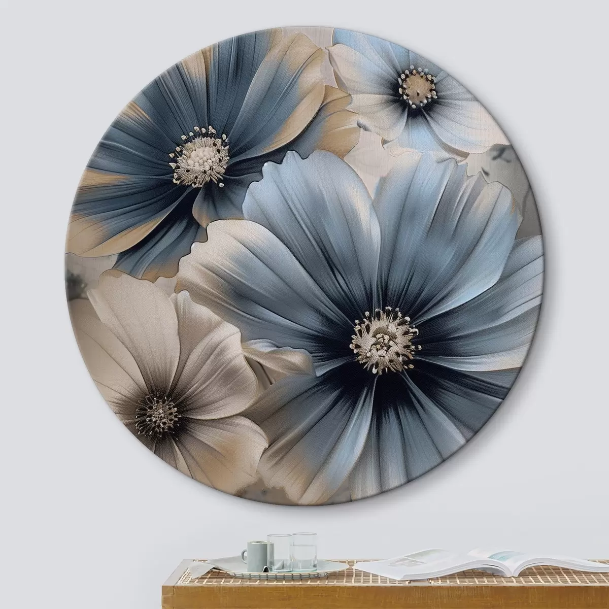 Runde Wandbilder Große blaue Blumen Nr r38878