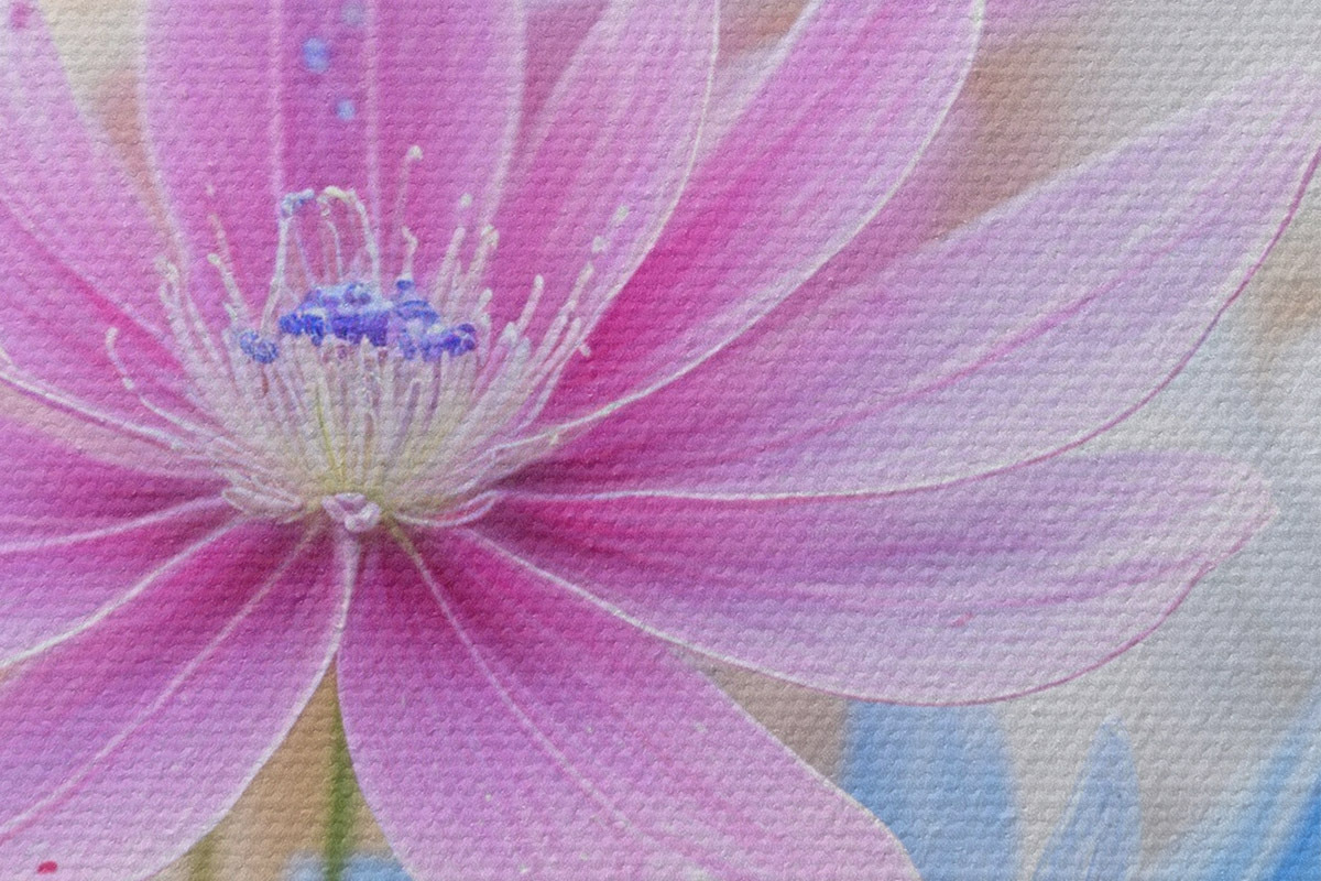 Das feine Fadengeflecht auf dieser Leinwand ähnelt der Oberfläche von professionellen Künstlerleinwänden.