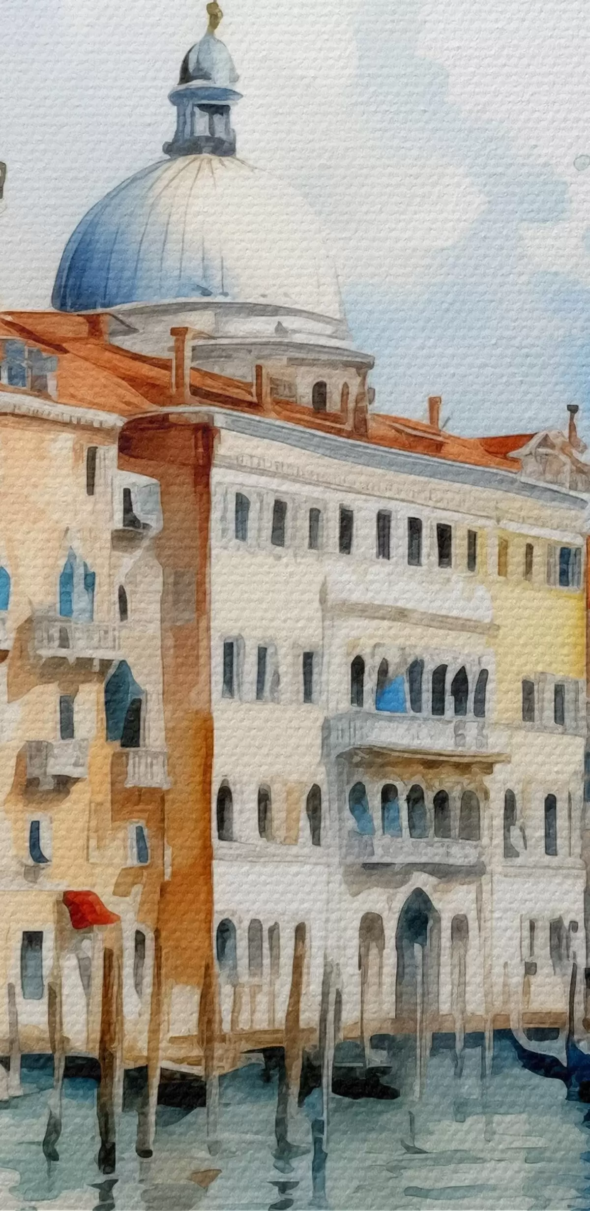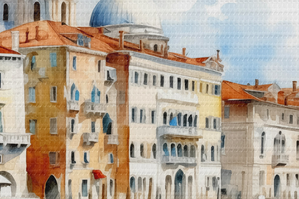 Runde Wandbilder Aquarelllandschaft Venedig, Bucht, Fluss, Architektur, Landschaft, Boote, Gondel r38908