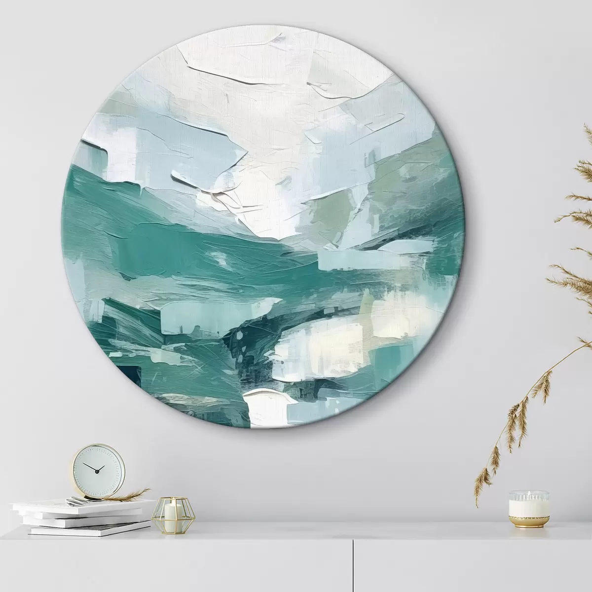 Runde Wandbilder Abstraktion aus großen blauen und weißen Strichen, Nachahmung der Ölmalerei, Minimalismus r38915
