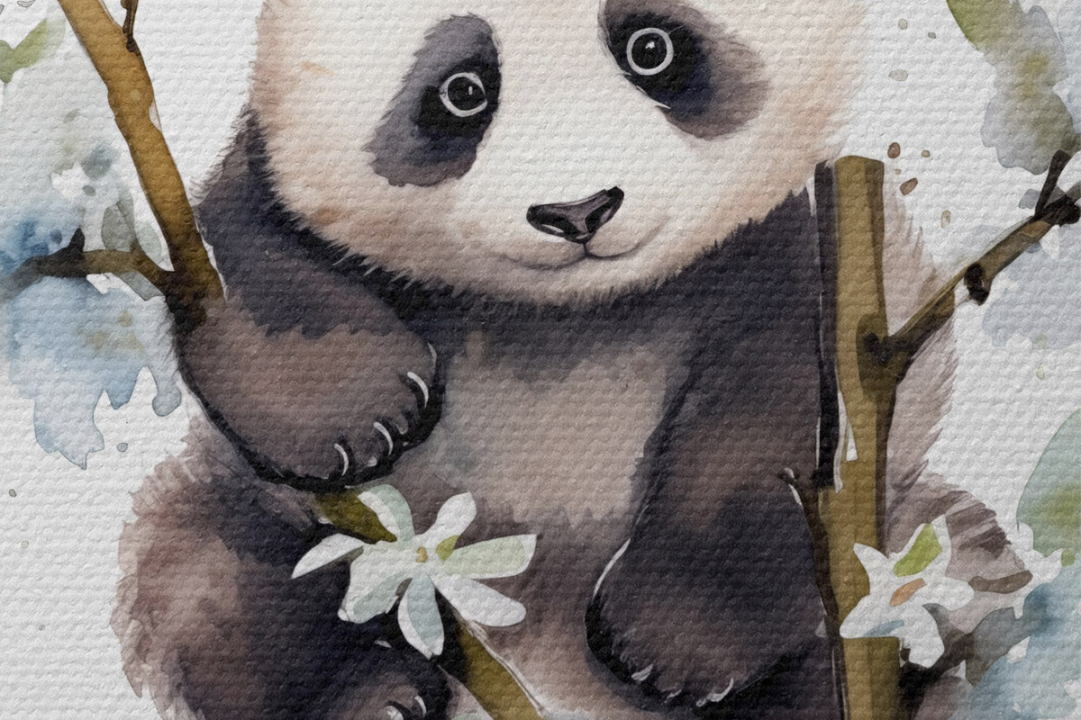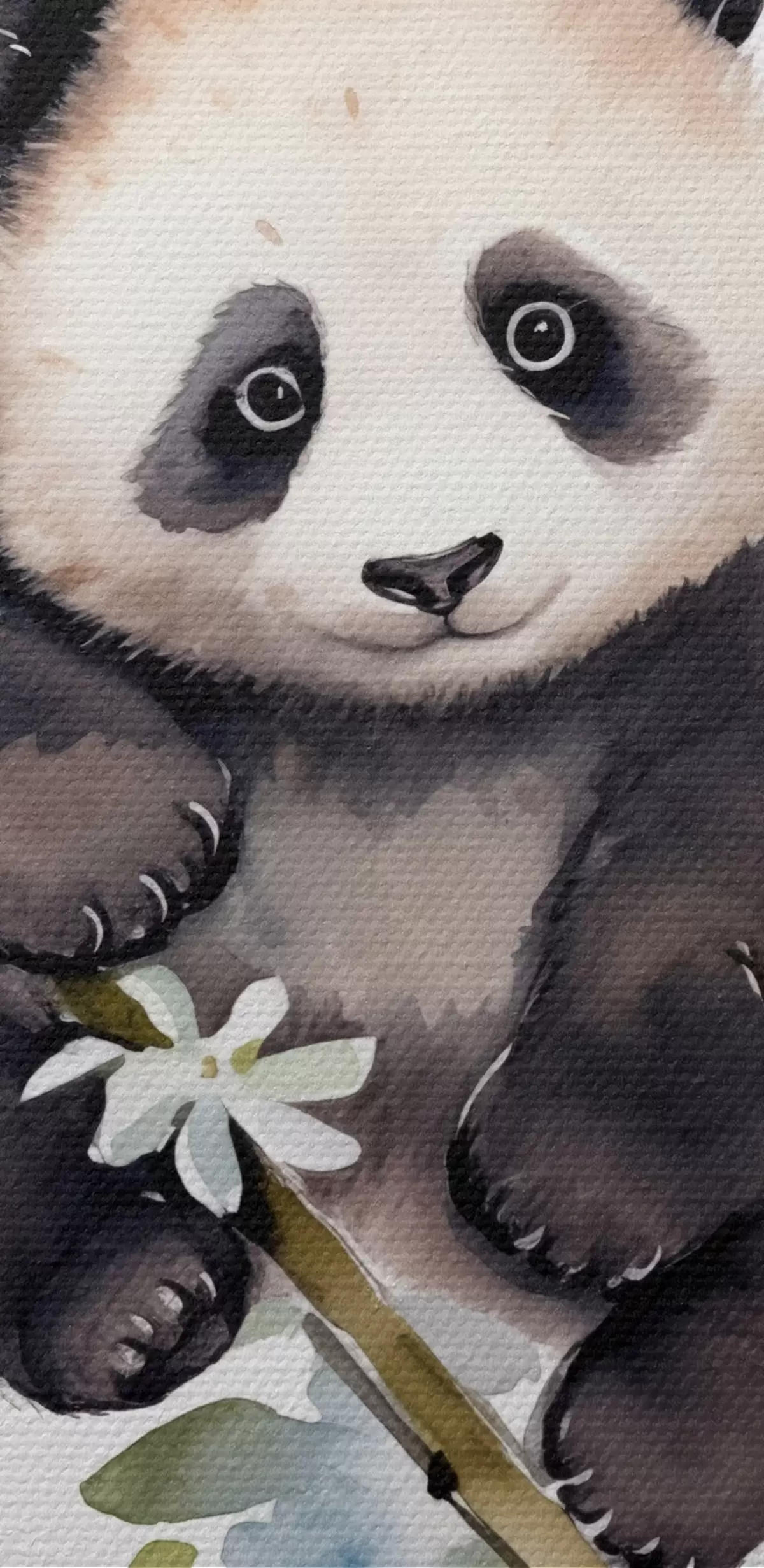 Runde Wandbilder Panda sitzt verspielt zwischen Blumen r38924