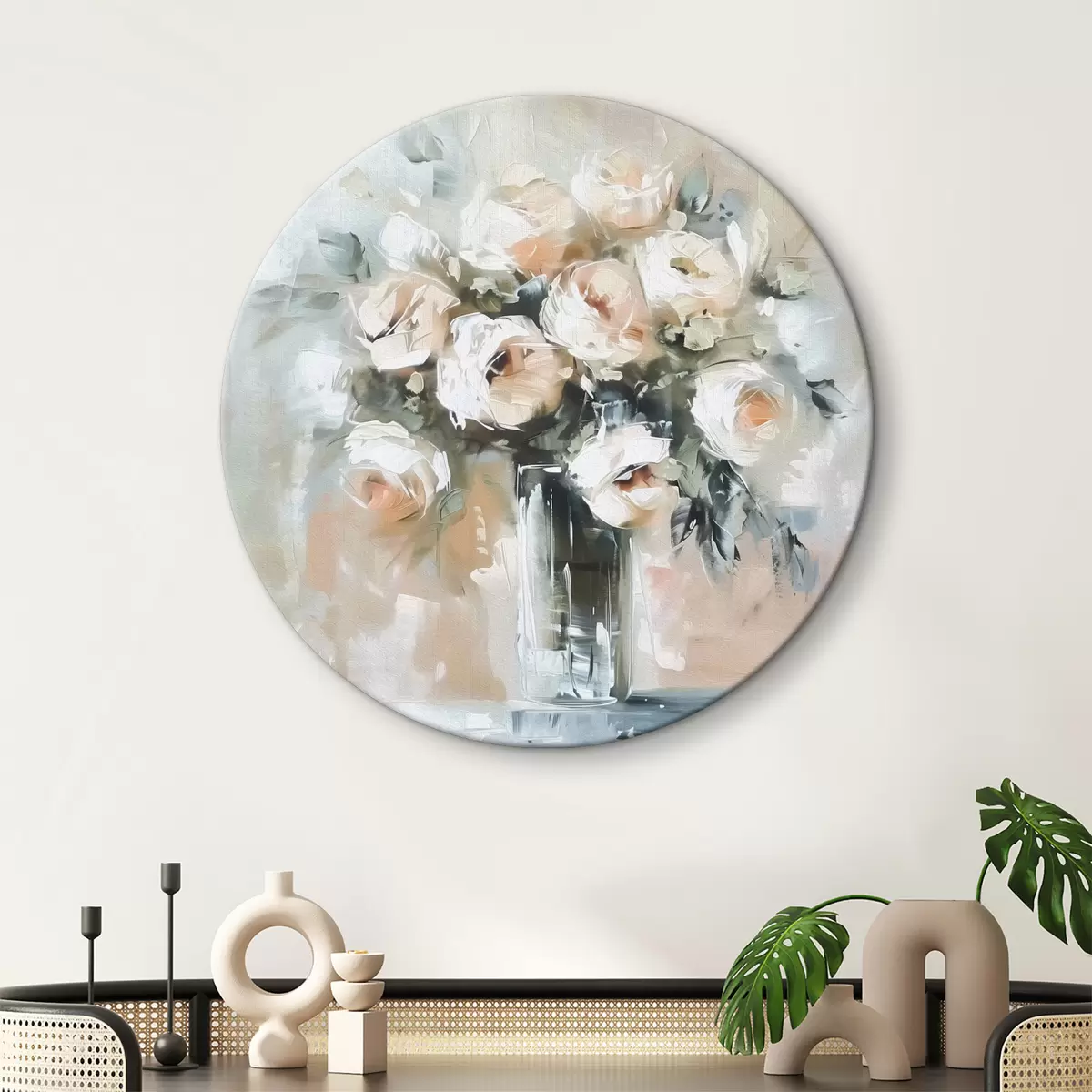 Runde Wandbilder Blumenstrauß aus weißen Rosen r38926