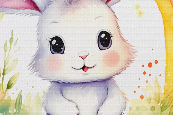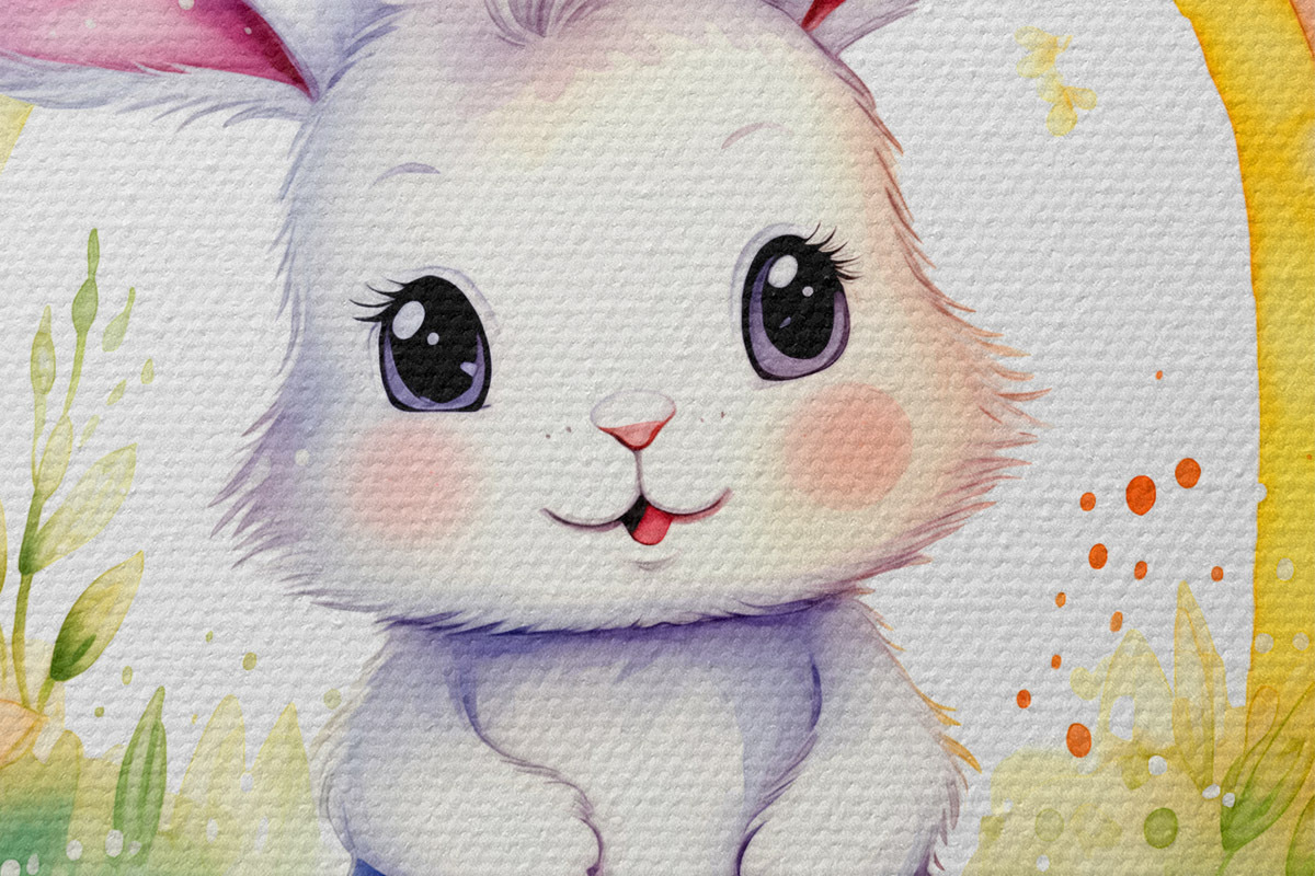 Runde Wandbilder Häschen unter einem skurrilen Regenbogen r38940