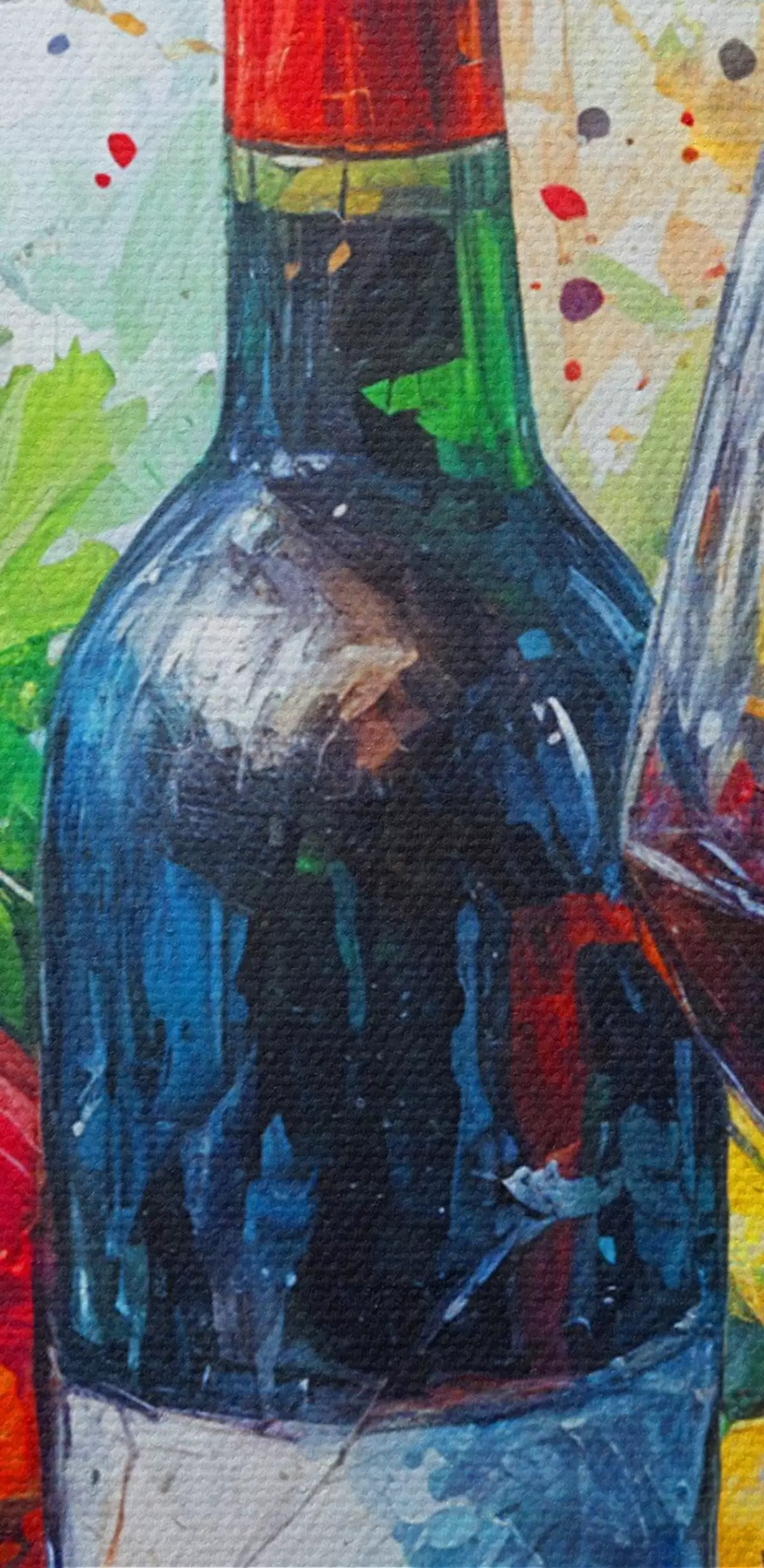 Runde Wandbilder Abstraktes Stillleben mit einer Flasche Wein, einem Glas Wein und bunten Früchten mit Spritzern in verschiedenen Farben Nr r38958