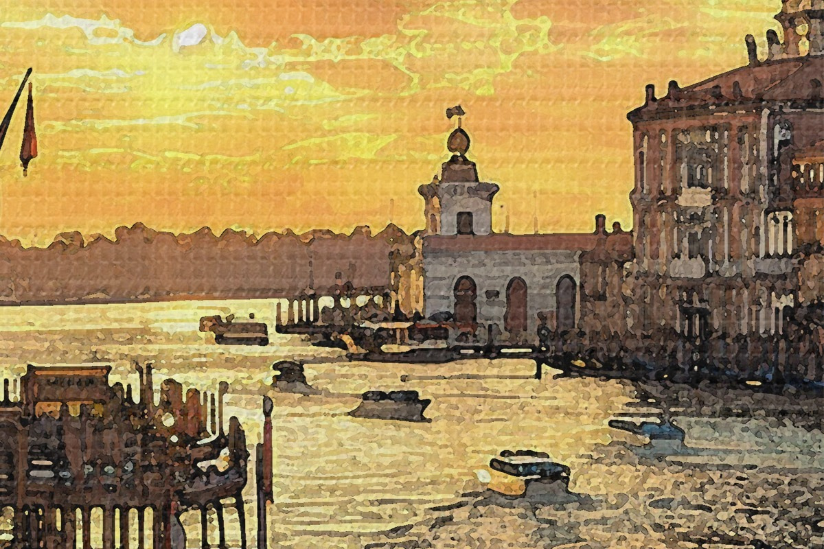 Runde Wandbilder Ein malerisches Gemälde des Canale Grande in Venedig, Italien bei Sonnenuntergang. r38963