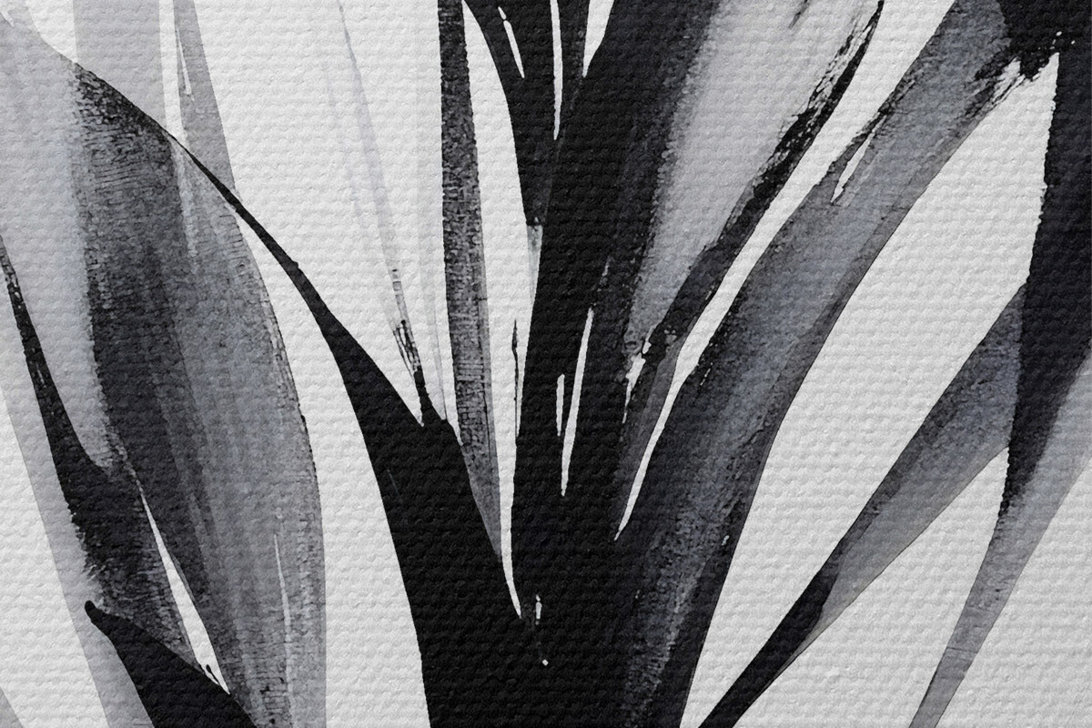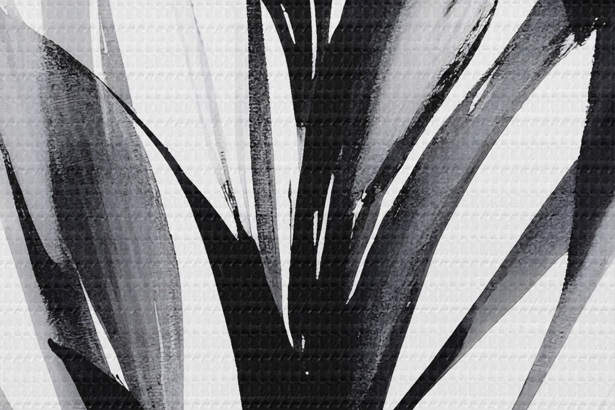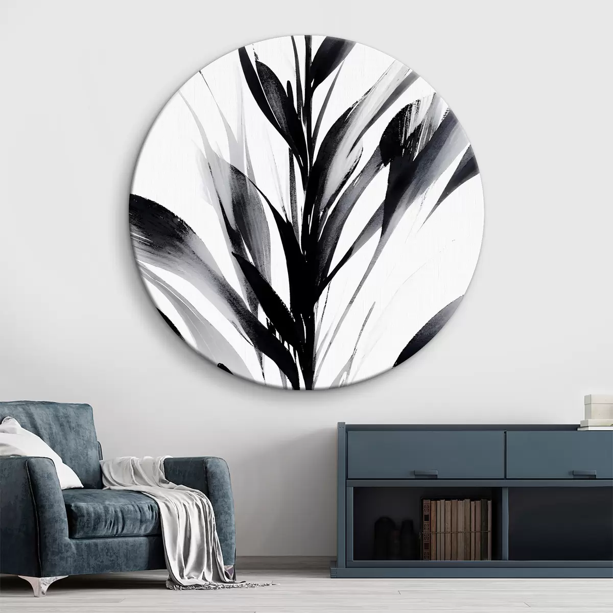 Runde Wandbilder Abstrakte Tuschezeichnung von schwarzen und weißen Blättern mit scharfen, eckigen Formen und hohem Kontrast r38981