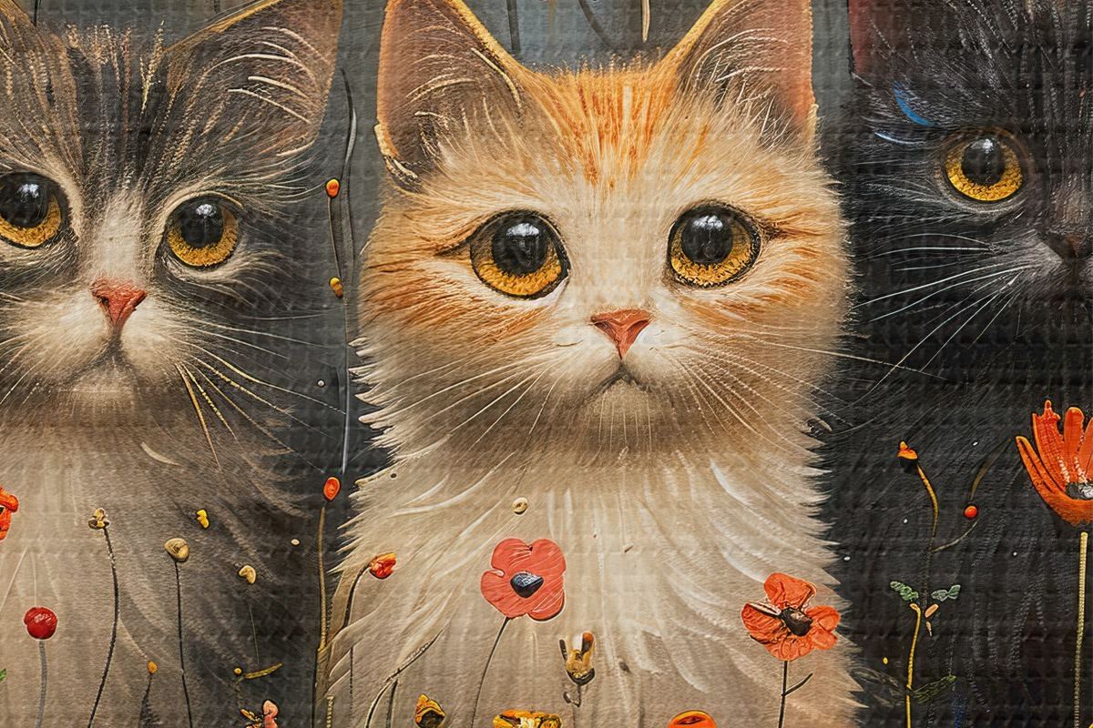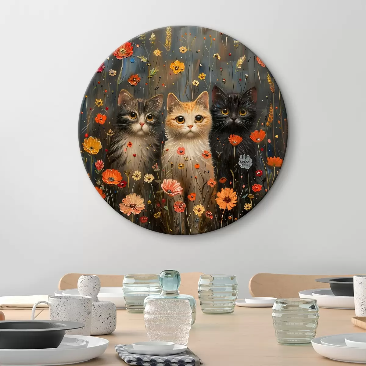 Runde Wandbilder Drei Katzen in Wildblumen Nr r39012