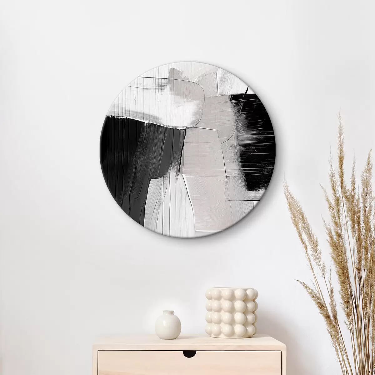 Runde Wandbilder Graue und beige Abstraktion Nr r39015