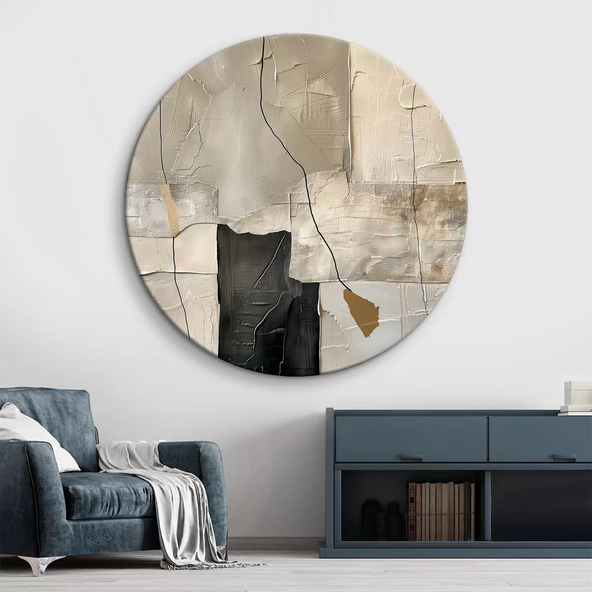 Runde Wandbilder Geometrische Abstraktion in Beige und Schwarz r39016