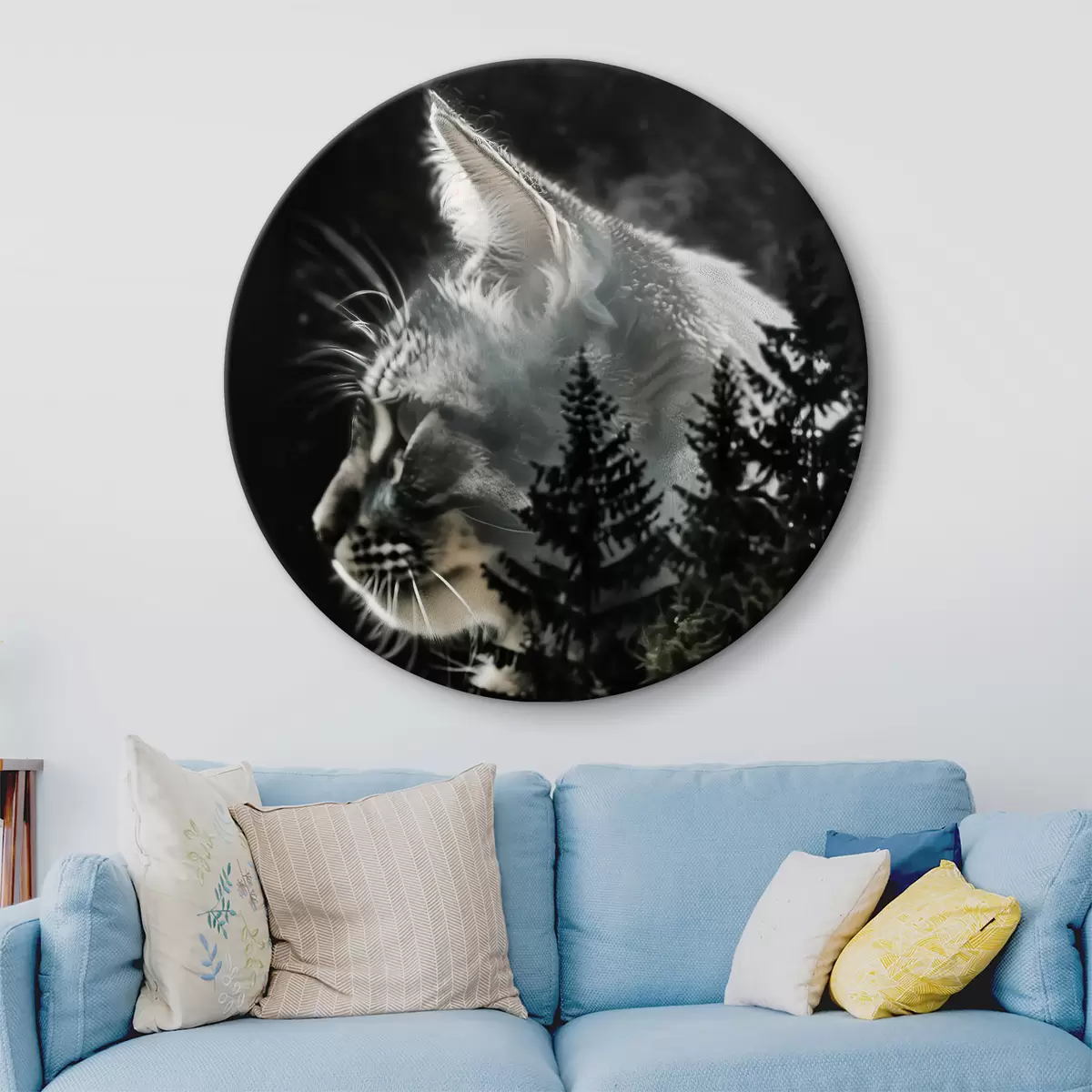 Runde Wandbilder Katze mit Weihnachtsbäumen r39028