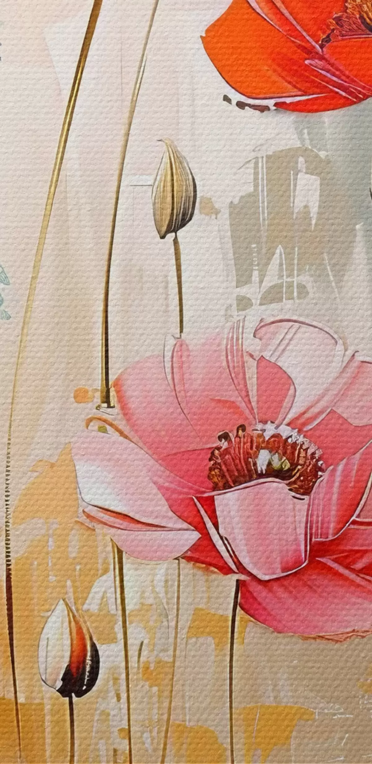 Drei Materialtypen stehen zur Verfügung: Economic Canvas - ein dichtes und haltbares Material für den Digitaldruck, identisch mit Malerleinwand, wasserfeste Oberfläche, realistische Wiedergabe von Details, mittelkörniges Material. Premium Canvas - die Textur ähnelt der einer Malerleinwand (verwobene kleine Fäden). Weiche, detaillierte Wiedergabe des Bildes auf einer matten Oberfläche. Eco-Premium - hochwertiges Gewebe aus 100% Baumwolle. Dank der natürlichen Baumwollfasern ist das Material langlebig und verschleißfest. Hervorragende Farbwiedergabe und Detailtreue.