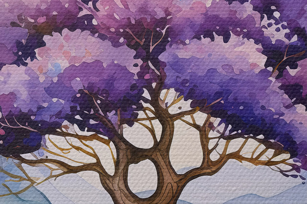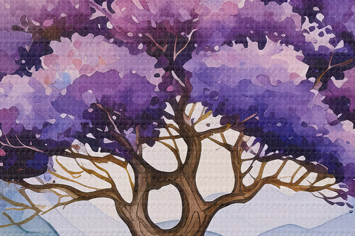 Runde Wandbilder Baum mit violetten Blüten Nr r39055