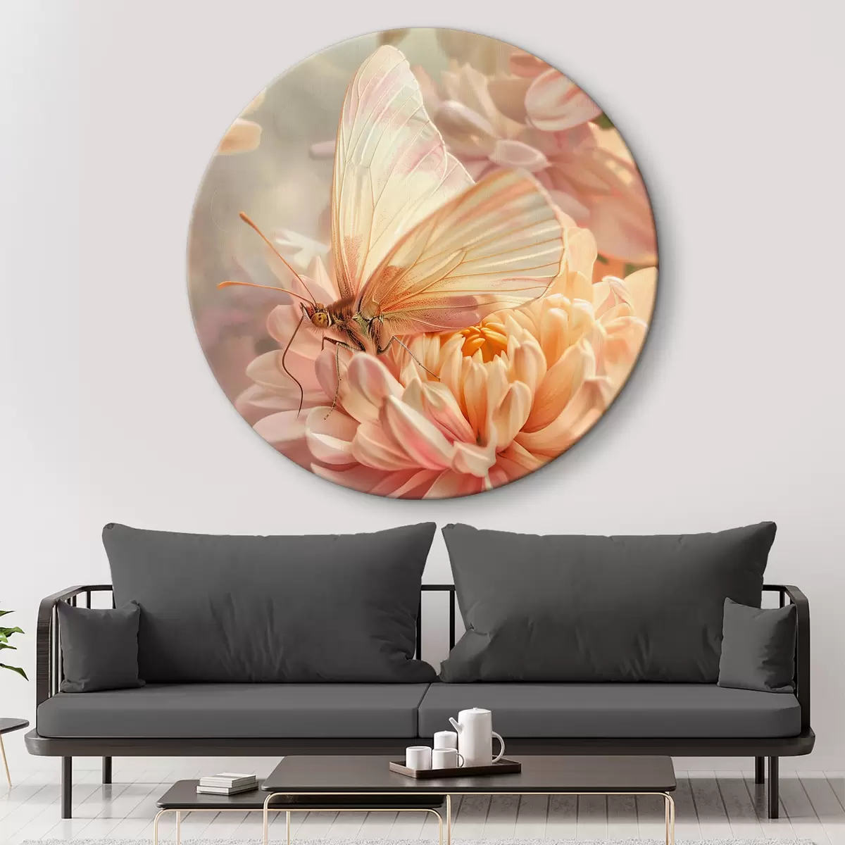 Runde Wandbilder Rosa Blume und Schmetterling r39070