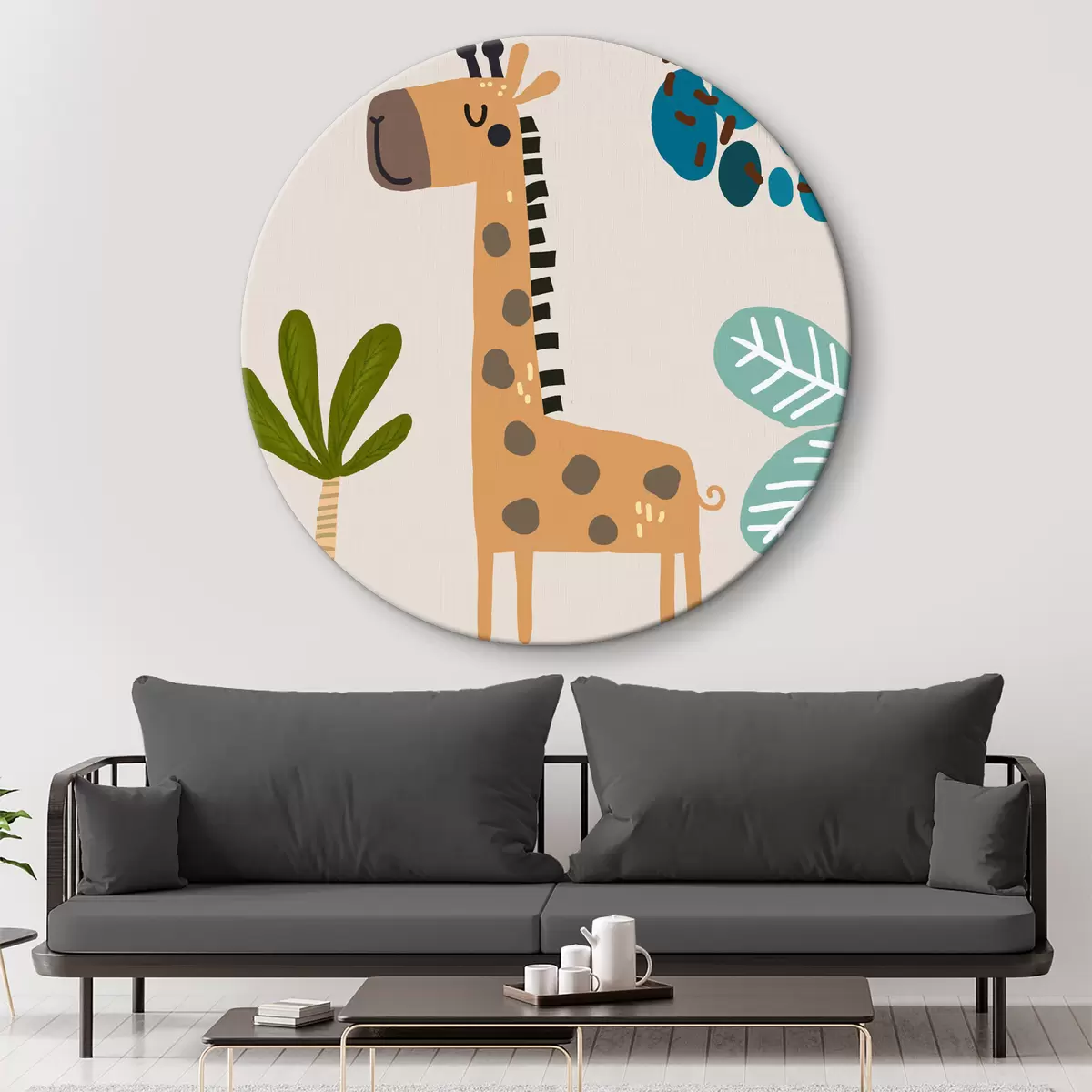 Runde Wandbilder Giraffe im Dschungel im Safari-Stil, Boho r39096