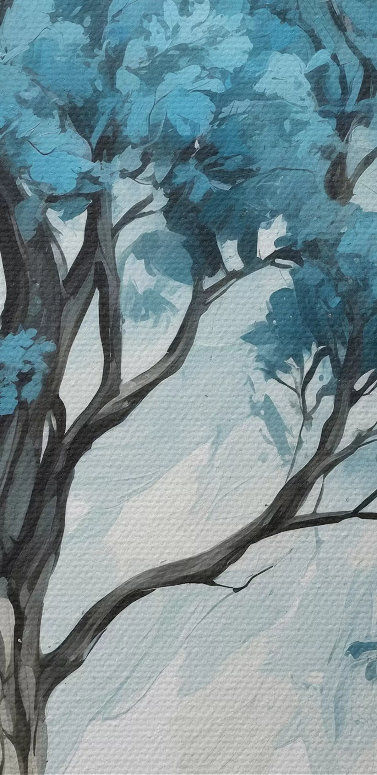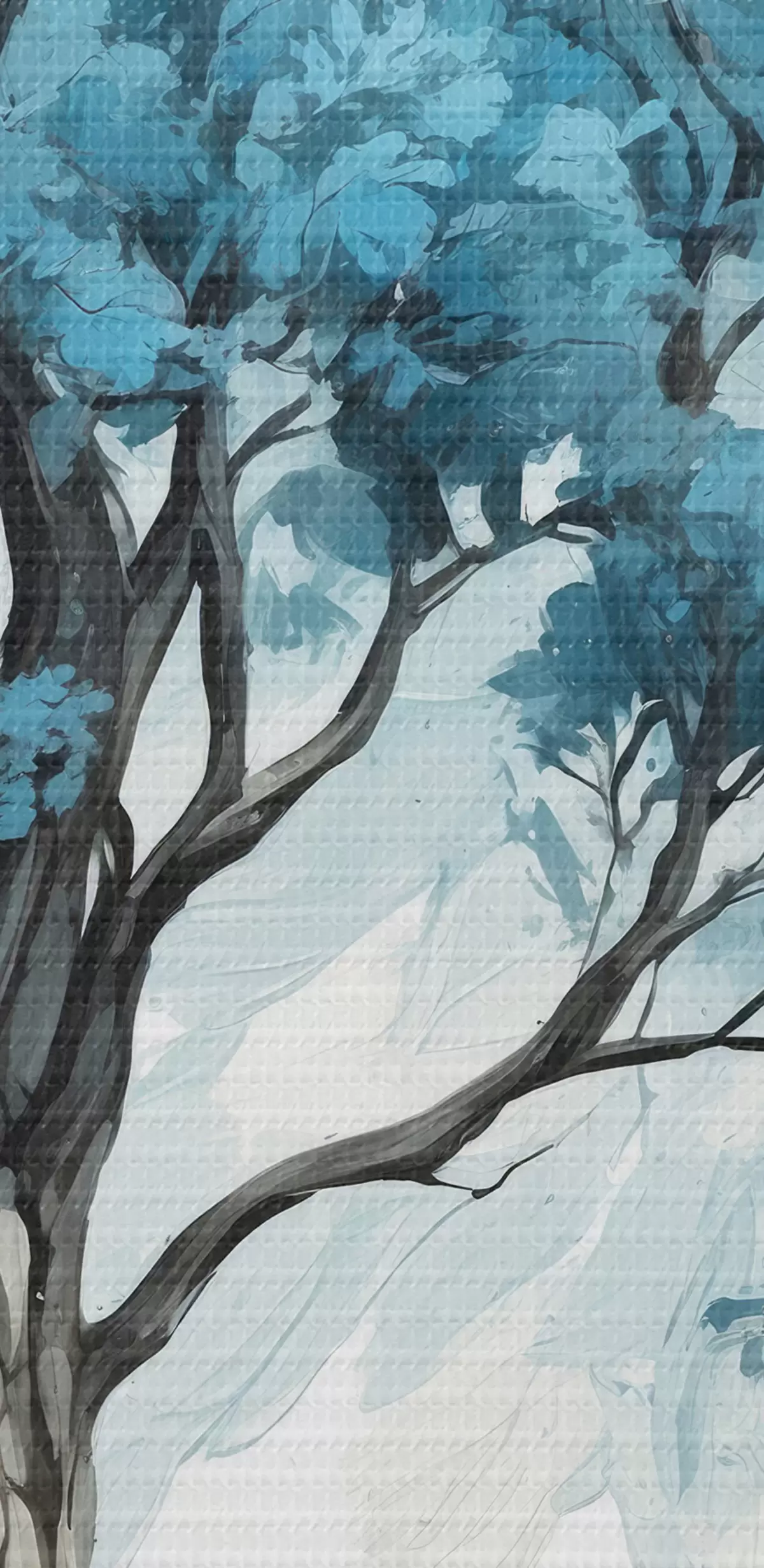 Runde Wandbilder Baum mit blauen Blättern auf weißem Hintergrund r39153