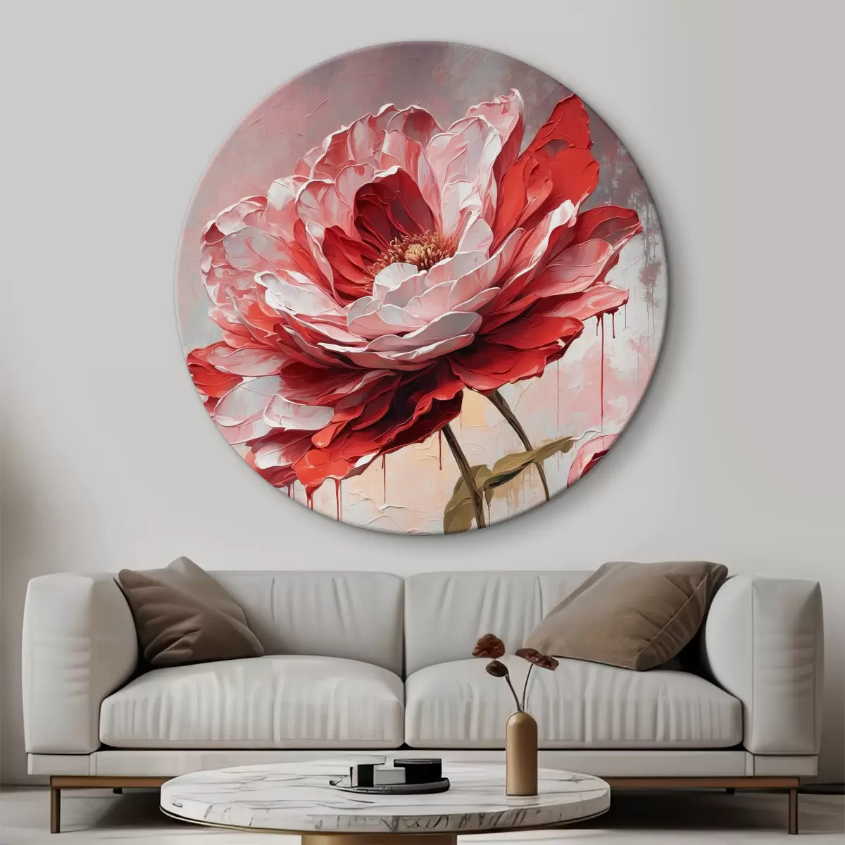 Runde Wandbilder Rote Blume auf weiß-grauem Hintergrund Nr r39173